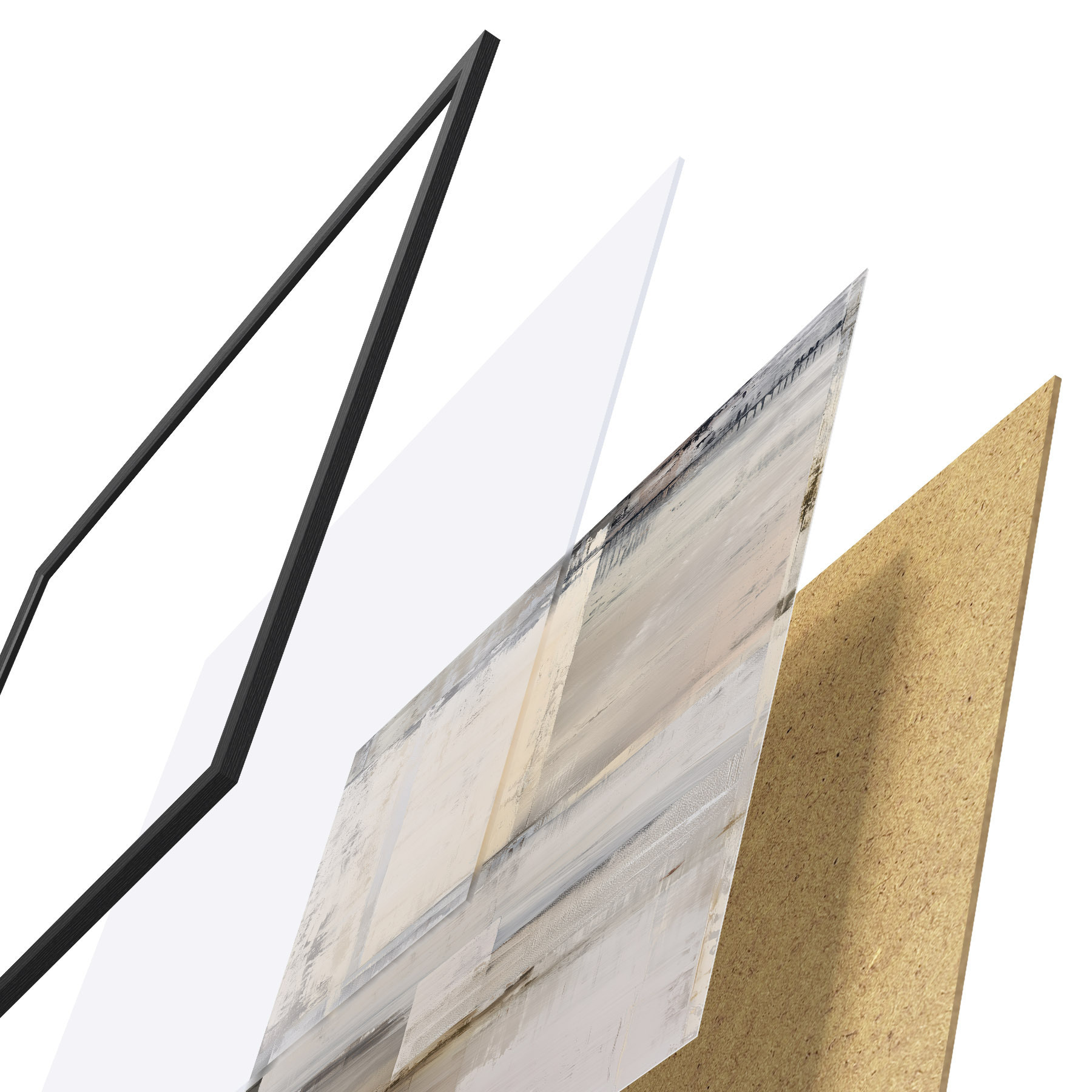Plakāts sastāv no rāmja, pleksstikla, iespiestā attēla un skaidu plātnes pamatnes. Plakātu var uzreiz piekarināt pie sienas, pateicoties aizmugurē esošajiem stiprinājumiem.