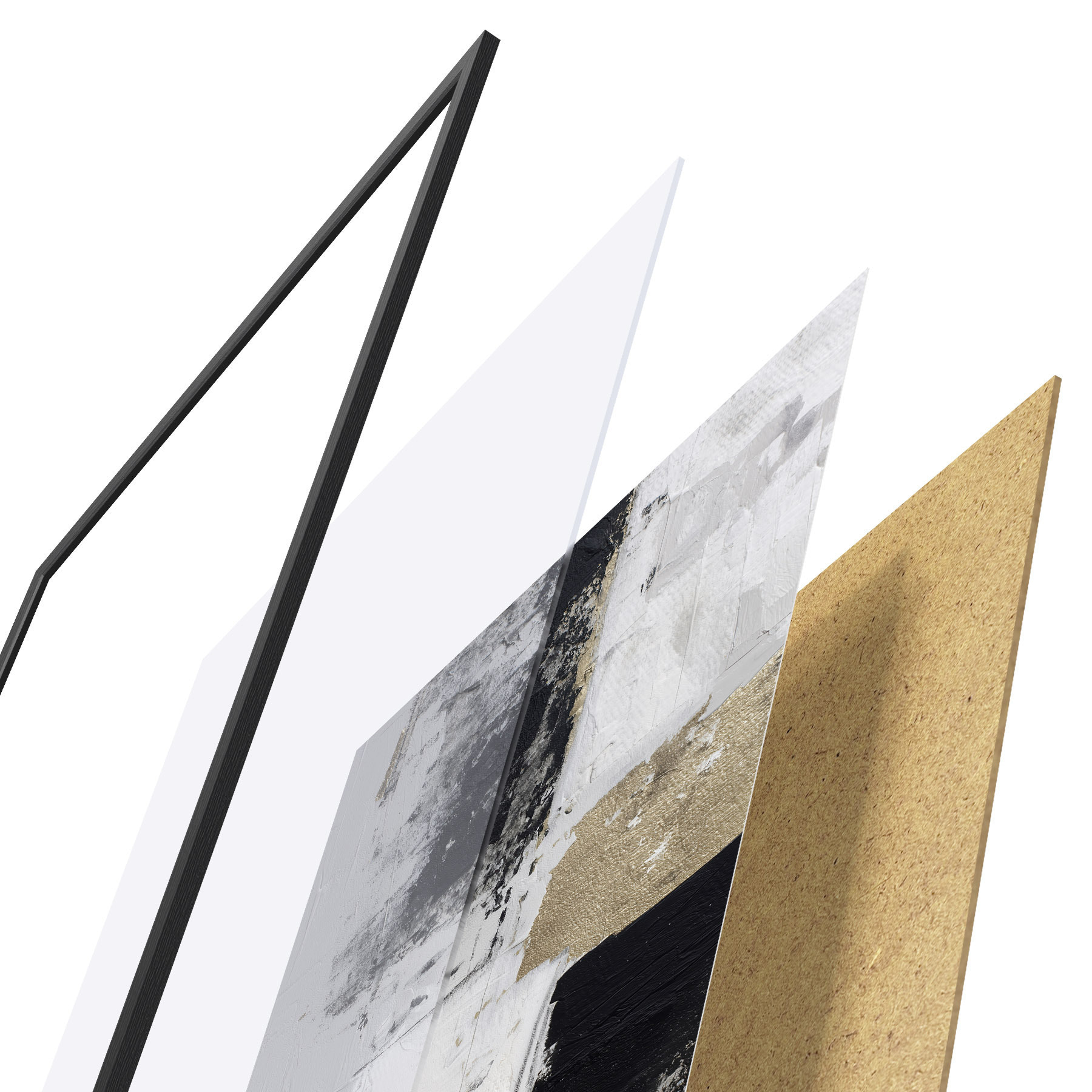 Plakāts sastāv no rāmja, pleksstikla, iespiestā attēla un skaidu plātnes pamatnes. Plakātu var uzreiz piekarināt pie sienas, pateicoties aizmugurē esošajiem stiprinājumiem.