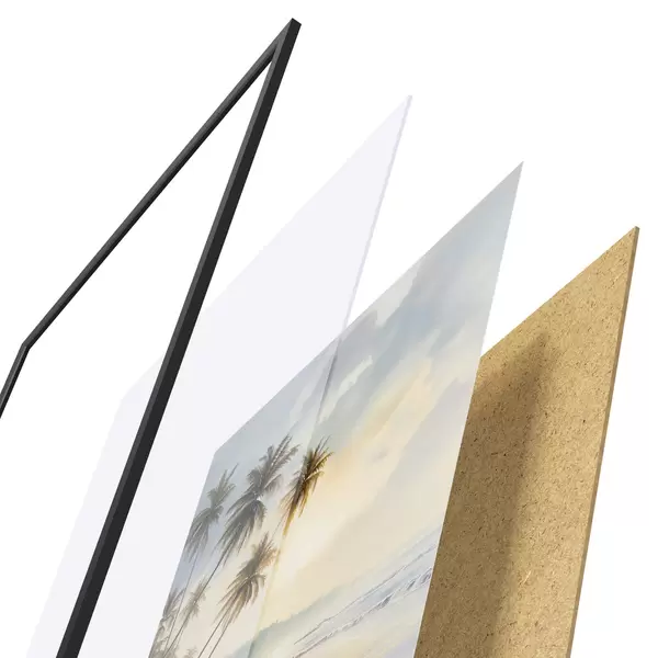 Plakāts sastāv no rāmja, pleksstikla, iespiestā attēla un skaidu plātnes pamatnes. Plakātu var uzreiz piekarināt pie sienas, pateicoties aizmugurē esošajiem stiprinājumiem.