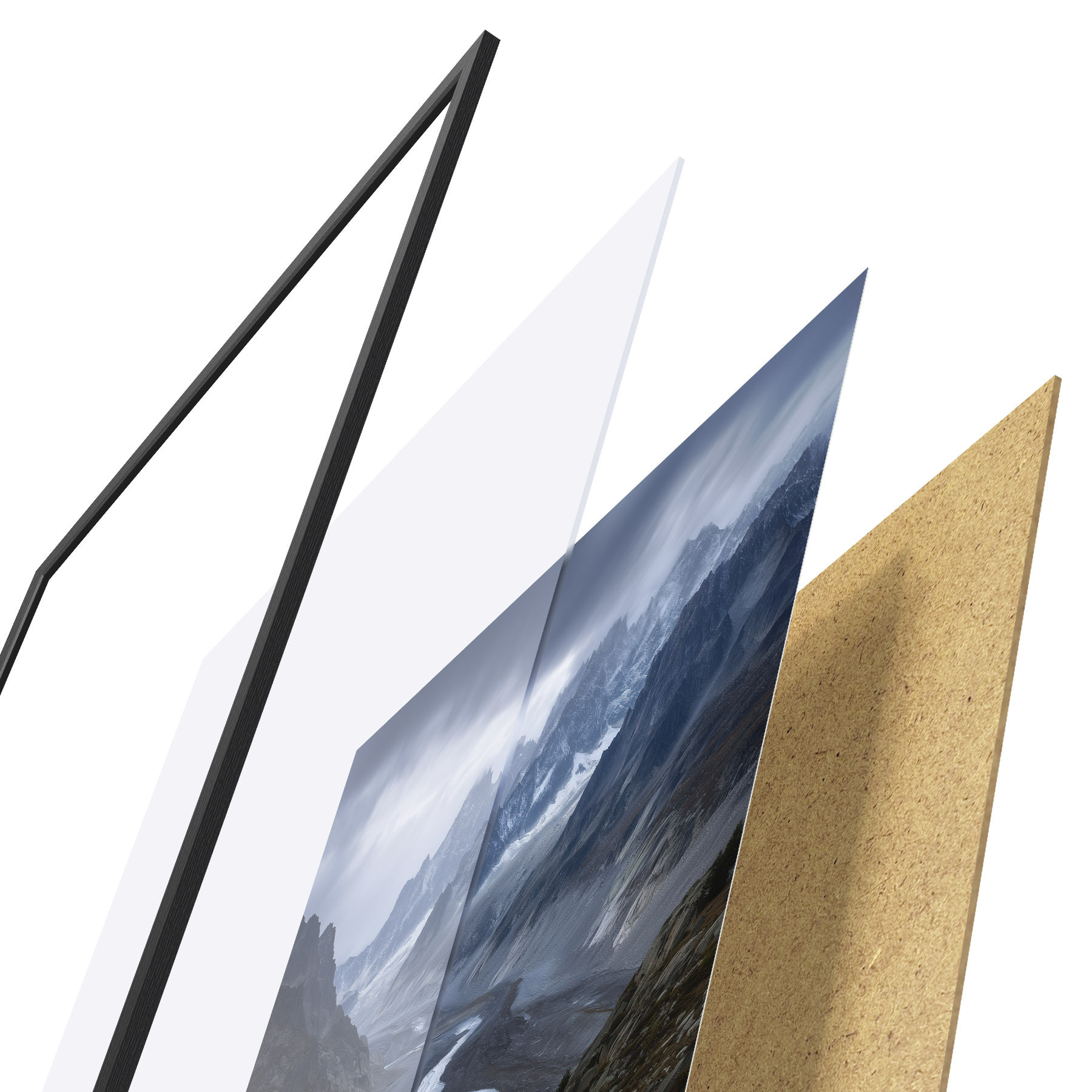 Plakāts sastāv no rāmja, pleksstikla, iespiestā attēla un skaidu plātnes pamatnes. Plakātu var uzreiz piekarināt pie sienas, pateicoties aizmugurē esošajiem stiprinājumiem.