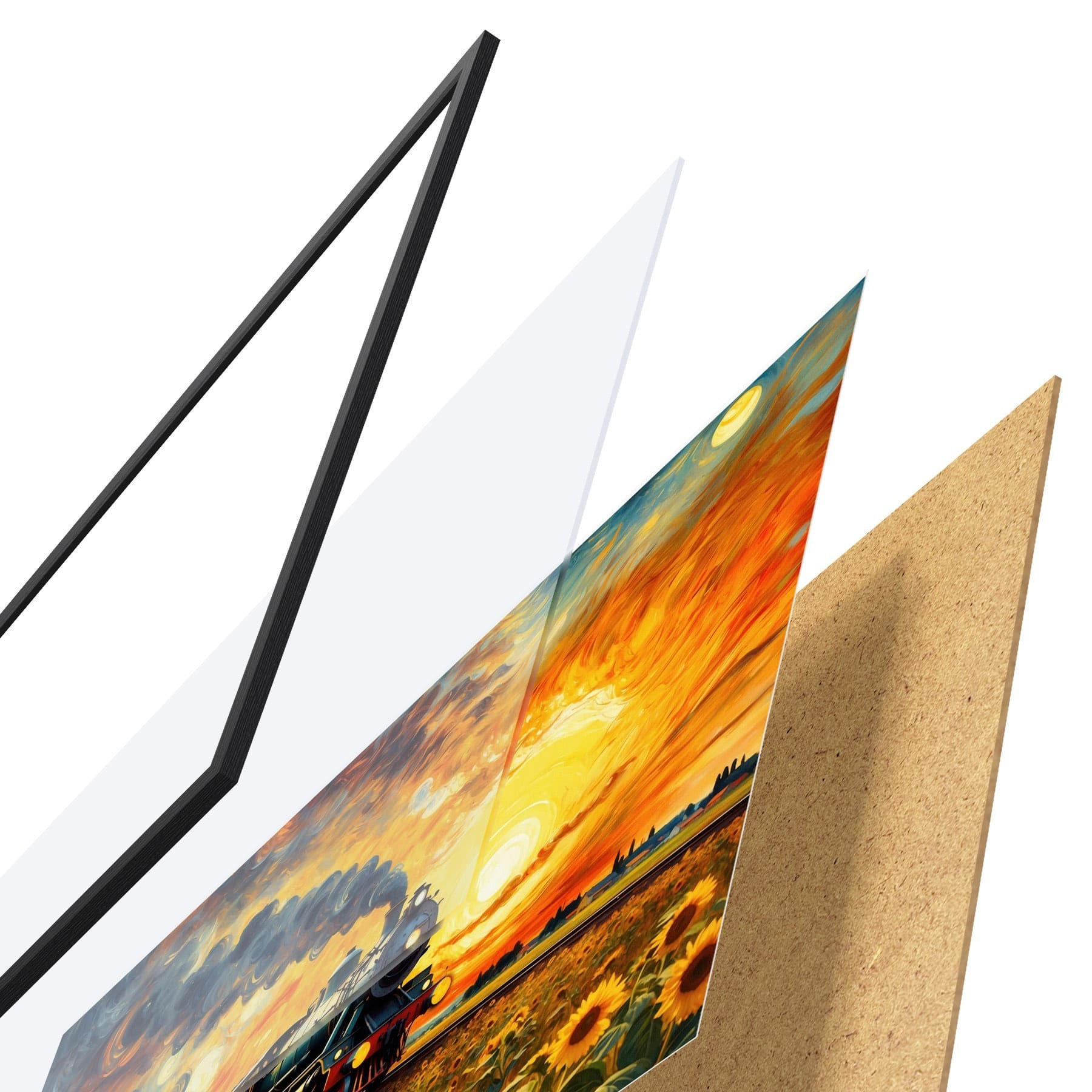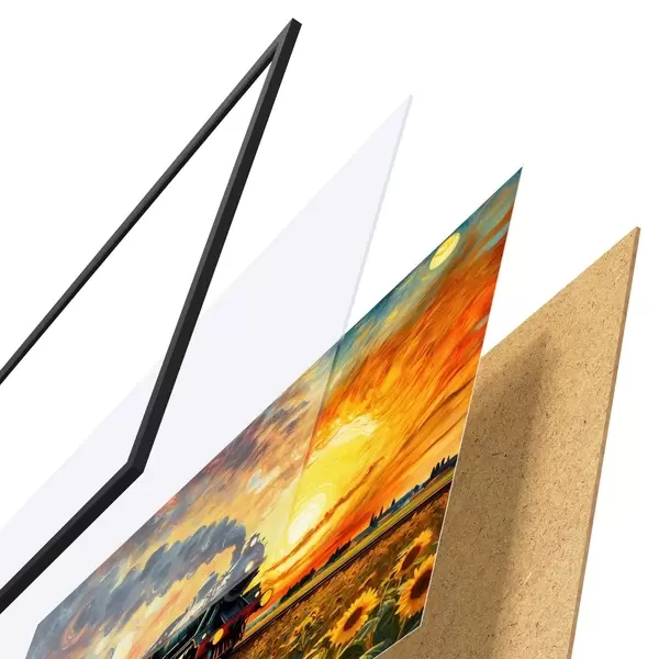 Plakāts sastāv no rāmja, pleksstikla, iespiestā attēla un skaidu plātnes pamatnes. Plakātu var uzreiz piekarināt pie sienas, pateicoties aizmugurē esošajiem stiprinājumiem.
