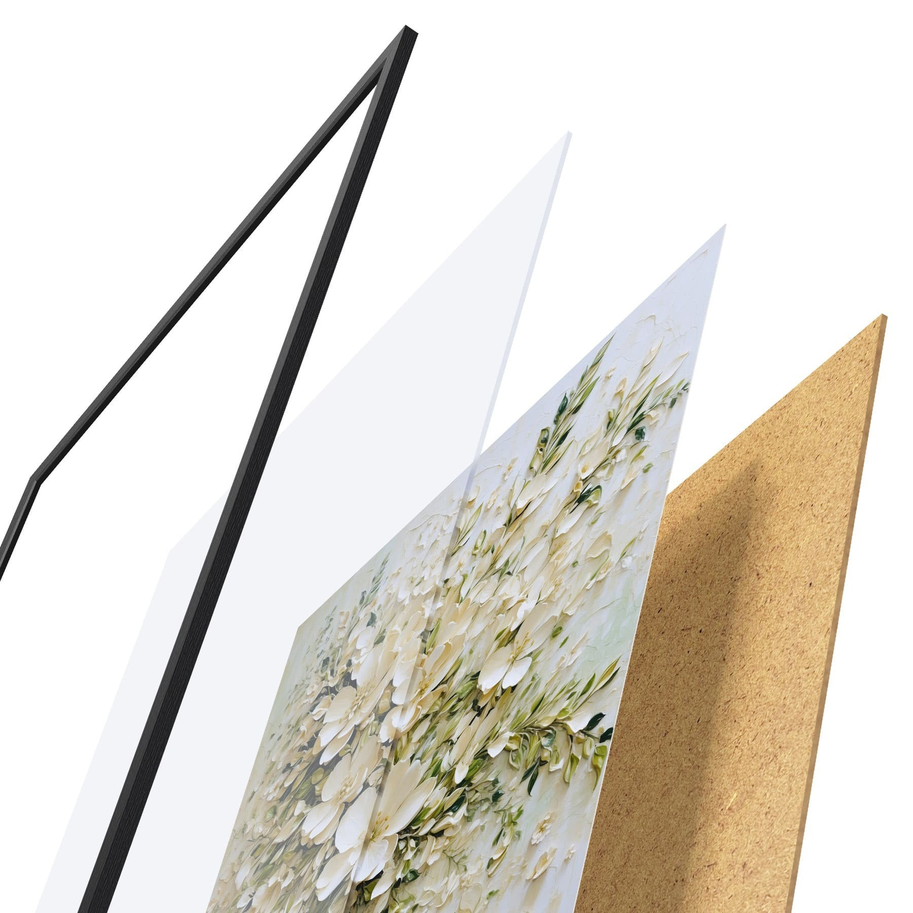 Plakāts sastāv no rāmja, pleksstikla, iespiestā attēla un skaidu plātnes pamatnes. Plakātu var uzreiz piekarināt pie sienas, pateicoties aizmugurē esošajiem stiprinājumiem.