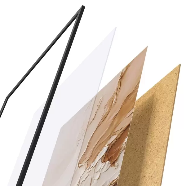 Plakāts sastāv no rāmja, pleksstikla, iespiestā attēla un skaidu plātnes pamatnes. Plakātu var uzreiz piekarināt pie sienas, pateicoties aizmugurē esošajiem stiprinājumiem.