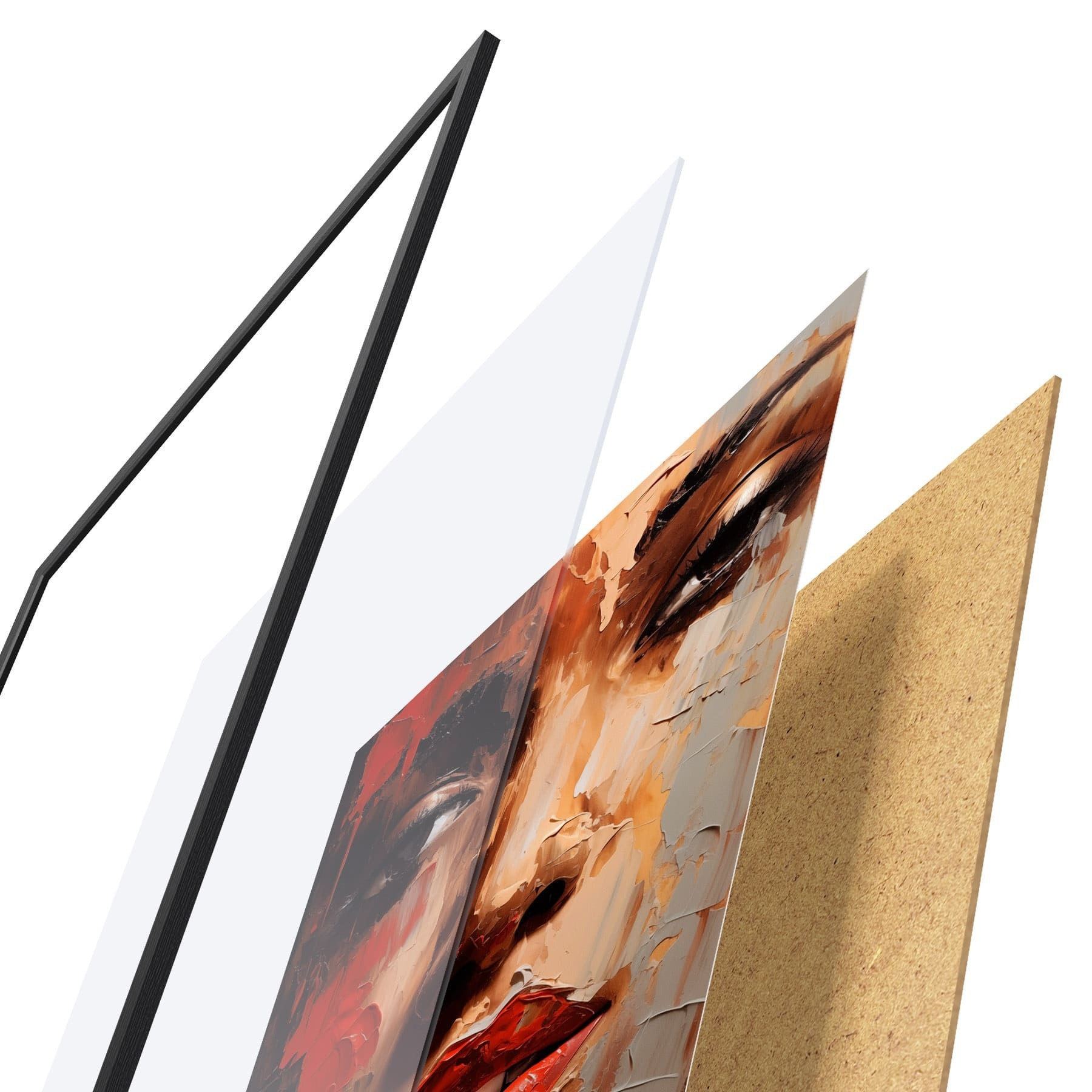 Plakāts sastāv no rāmja, pleksstikla, iespiestā attēla un skaidu plātnes pamatnes. Plakātu var uzreiz piekarināt pie sienas, pateicoties aizmugurē esošajiem stiprinājumiem.