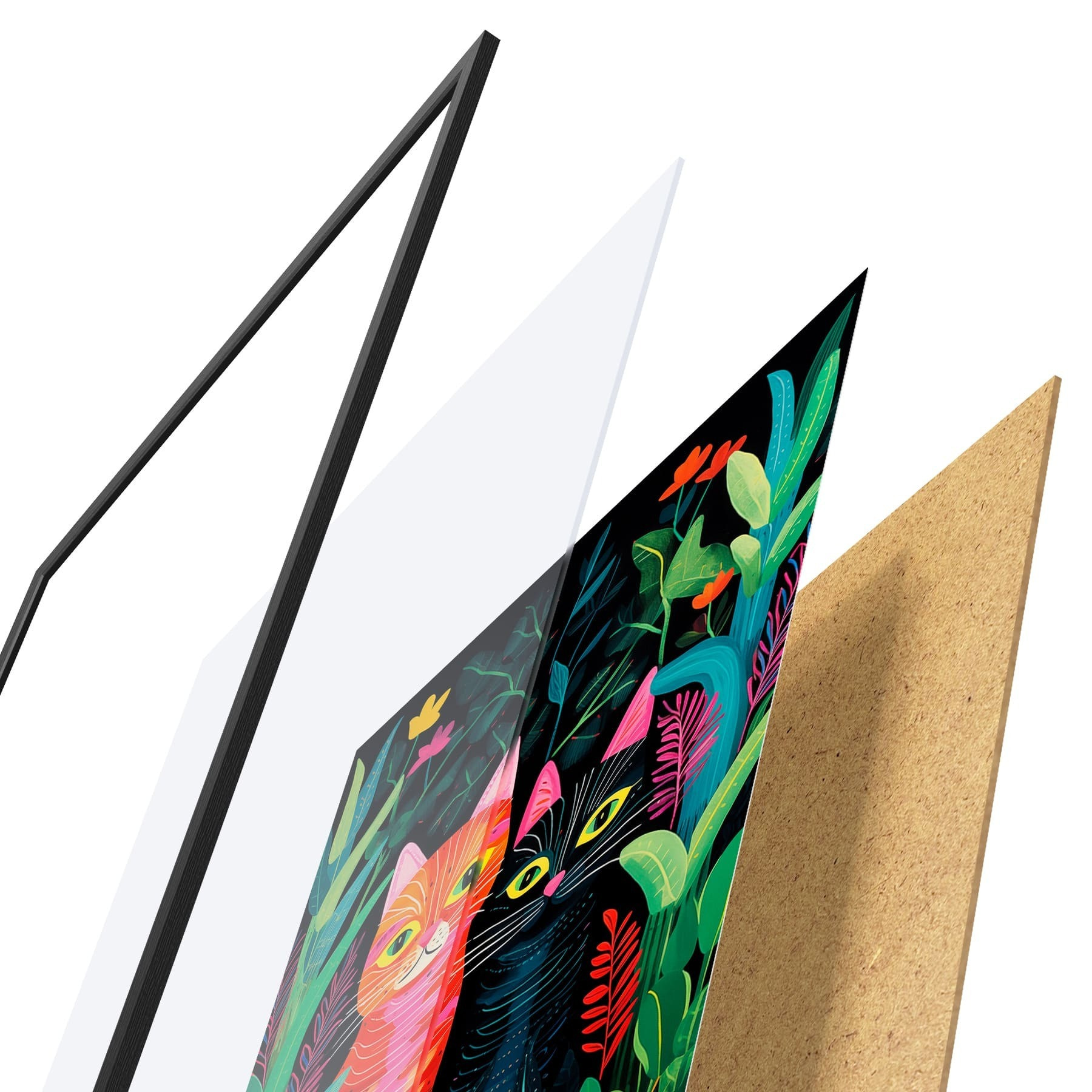 Plakāts sastāv no rāmja, pleksstikla, iespiestā attēla un skaidu plātnes pamatnes. Plakātu var uzreiz piekarināt pie sienas, pateicoties aizmugurē esošajiem stiprinājumiem.