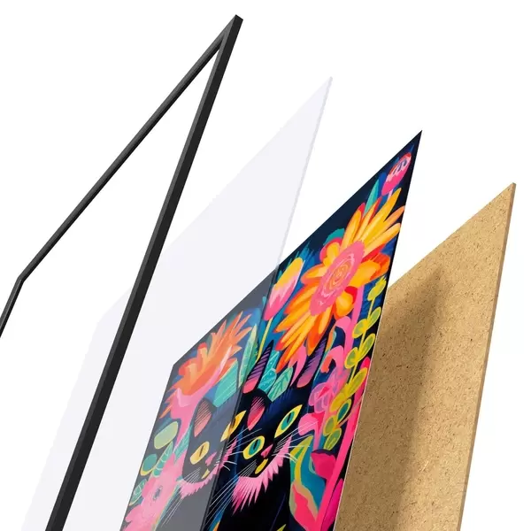 Plakāts sastāv no rāmja, pleksstikla, iespiestā attēla un skaidu plātnes pamatnes. Plakātu var uzreiz piekarināt pie sienas, pateicoties aizmugurē esošajiem stiprinājumiem.