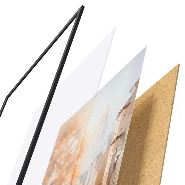 Plakāts sastāv no rāmja, pleksstikla, iespiestā attēla un skaidu plātnes pamatnes. Plakātu var uzreiz piekarināt pie sienas, pateicoties aizmugurē esošajiem stiprinājumiem.