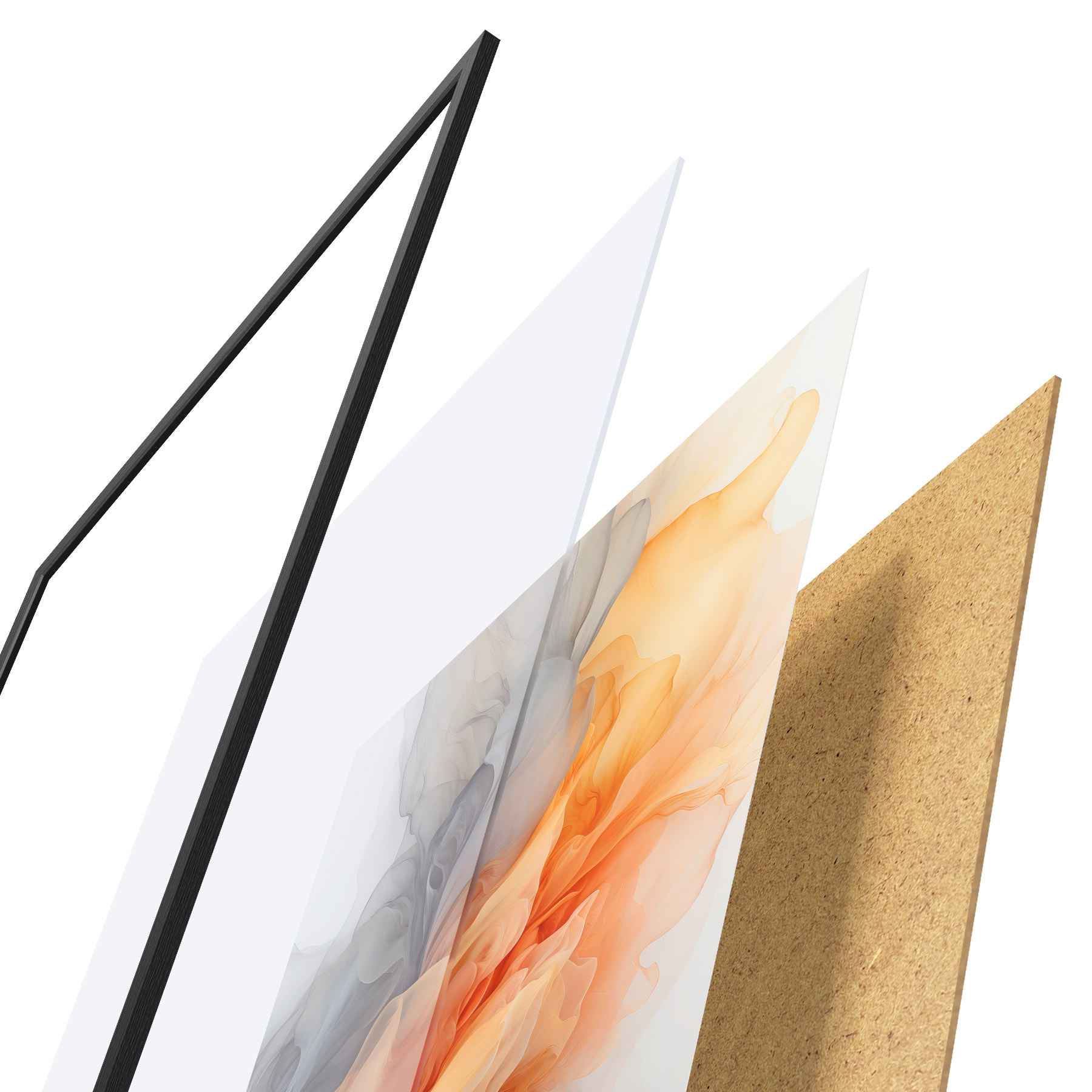 Plakāts sastāv no rāmja, pleksstikla, iespiestā attēla un skaidu plātnes pamatnes. Plakātu var uzreiz piekarināt pie sienas, pateicoties aizmugurē esošajiem stiprinājumiem.