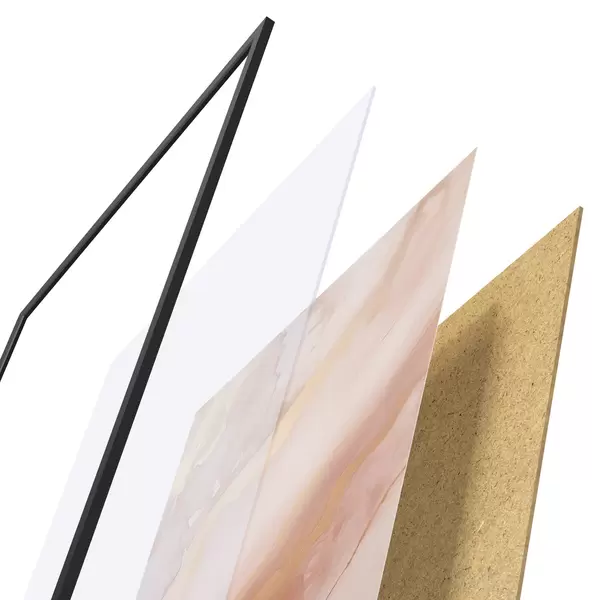 Plakāts sastāv no rāmja, pleksstikla, iespiestā attēla un skaidu plātnes pamatnes. Plakātu var uzreiz piekarināt pie sienas, pateicoties aizmugurē esošajiem stiprinājumiem.