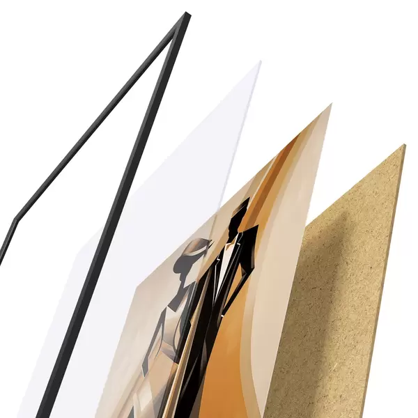 Plakāts sastāv no rāmja, pleksstikla, iespiestā attēla un skaidu plātnes pamatnes. Plakātu var uzreiz piekarināt pie sienas, pateicoties aizmugurē esošajiem stiprinājumiem.