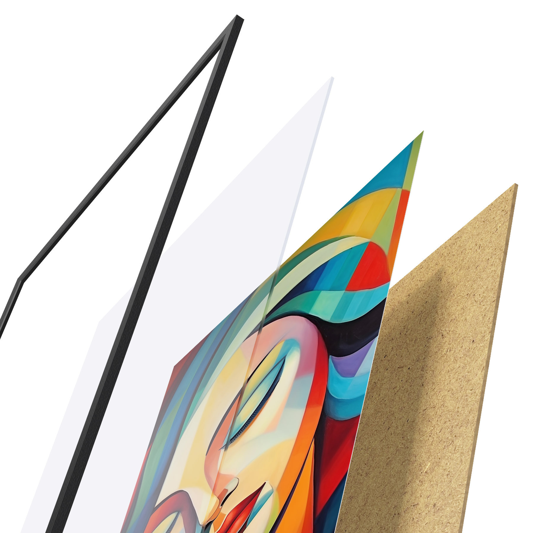 Plakāts sastāv no rāmja, pleksstikla, iespiestā attēla un skaidu plātnes pamatnes. Plakātu var uzreiz piekarināt pie sienas, pateicoties aizmugurē esošajiem stiprinājumiem.