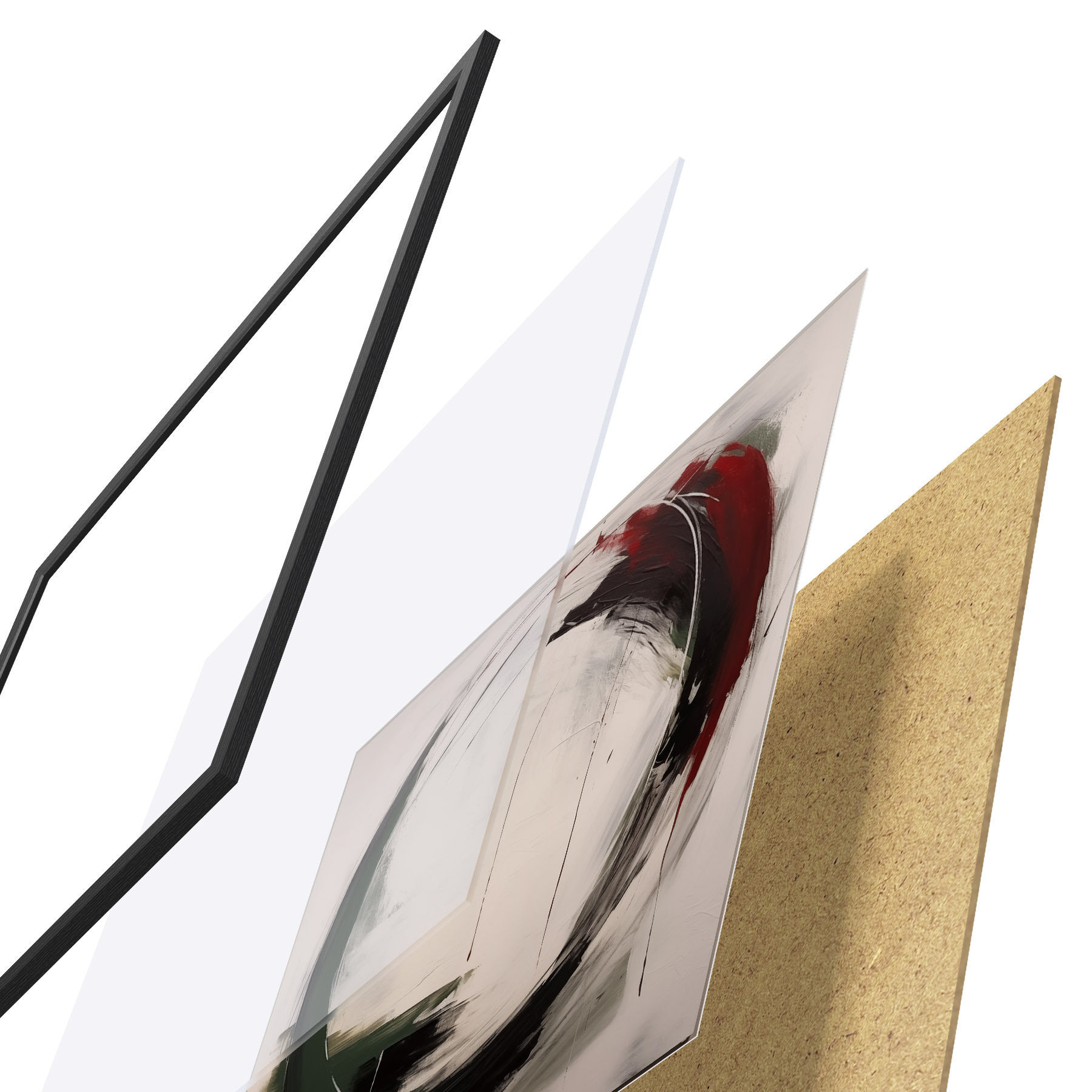 Plakāts sastāv no rāmja, pleksstikla, iespiestā attēla un skaidu plātnes pamatnes. Plakātu var uzreiz piekarināt pie sienas, pateicoties aizmugurē esošajiem stiprinājumiem.