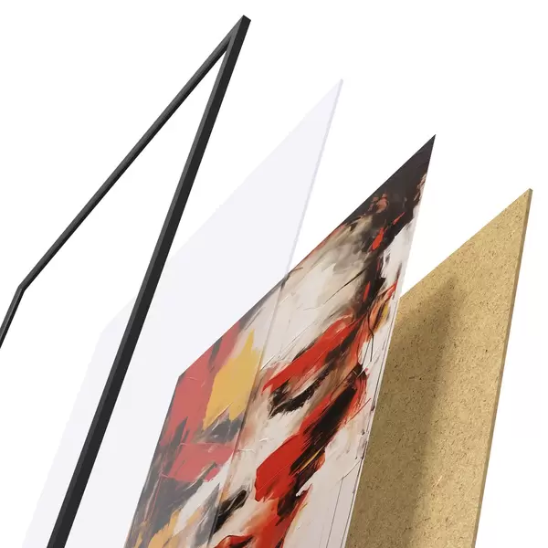 Plakāts sastāv no rāmja, pleksstikla, iespiestā attēla un skaidu plātnes pamatnes. Plakātu var uzreiz piekarināt pie sienas, pateicoties aizmugurē esošajiem stiprinājumiem.