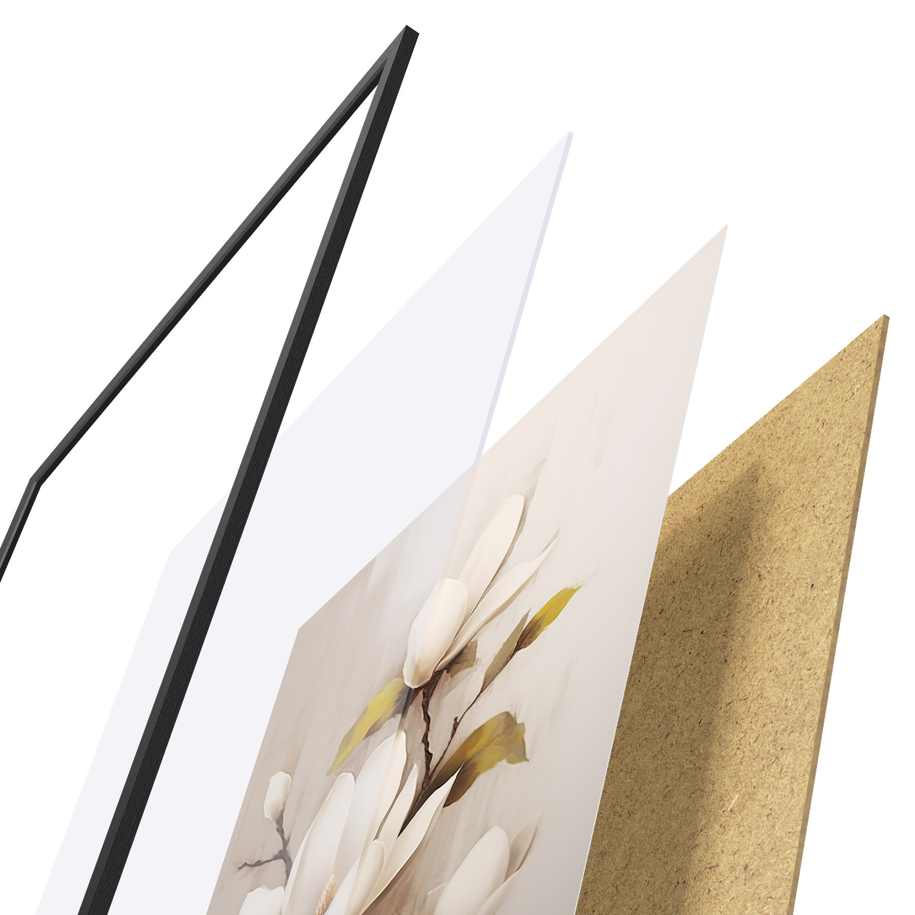 Plakāts sastāv no rāmja, pleksstikla, iespiestā attēla un skaidu plātnes pamatnes. Plakātu var uzreiz piekarināt pie sienas, pateicoties aizmugurē esošajiem stiprinājumiem.