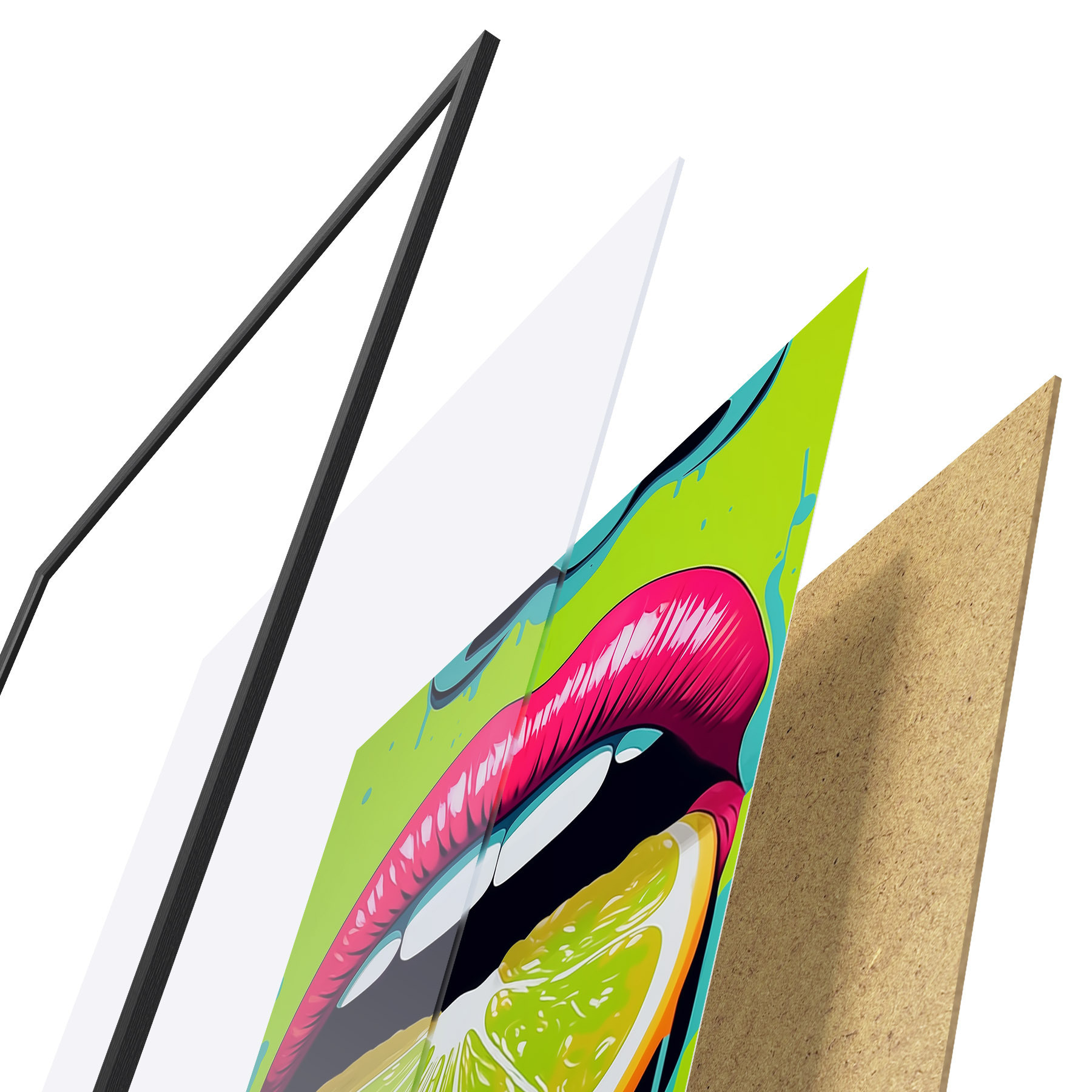 Plakāts sastāv no rāmja, pleksstikla, iespiestā attēla un skaidu plātnes pamatnes. Plakātu var uzreiz piekarināt pie sienas, pateicoties aizmugurē esošajiem stiprinājumiem.