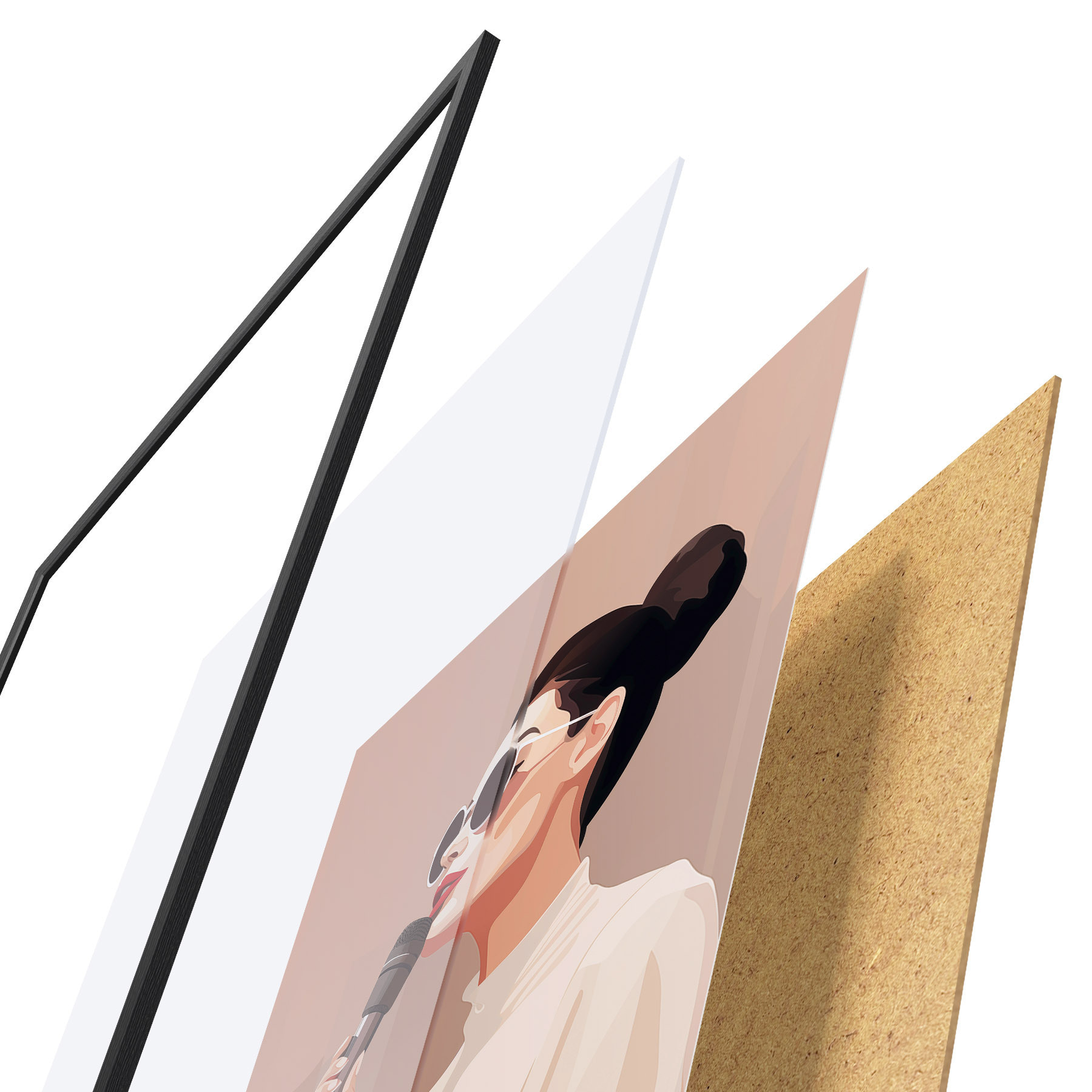 Plakāts sastāv no rāmja, pleksstikla, iespiestā attēla un skaidu plātnes pamatnes. Plakātu var uzreiz piekarināt pie sienas, pateicoties aizmugurē esošajiem stiprinājumiem.