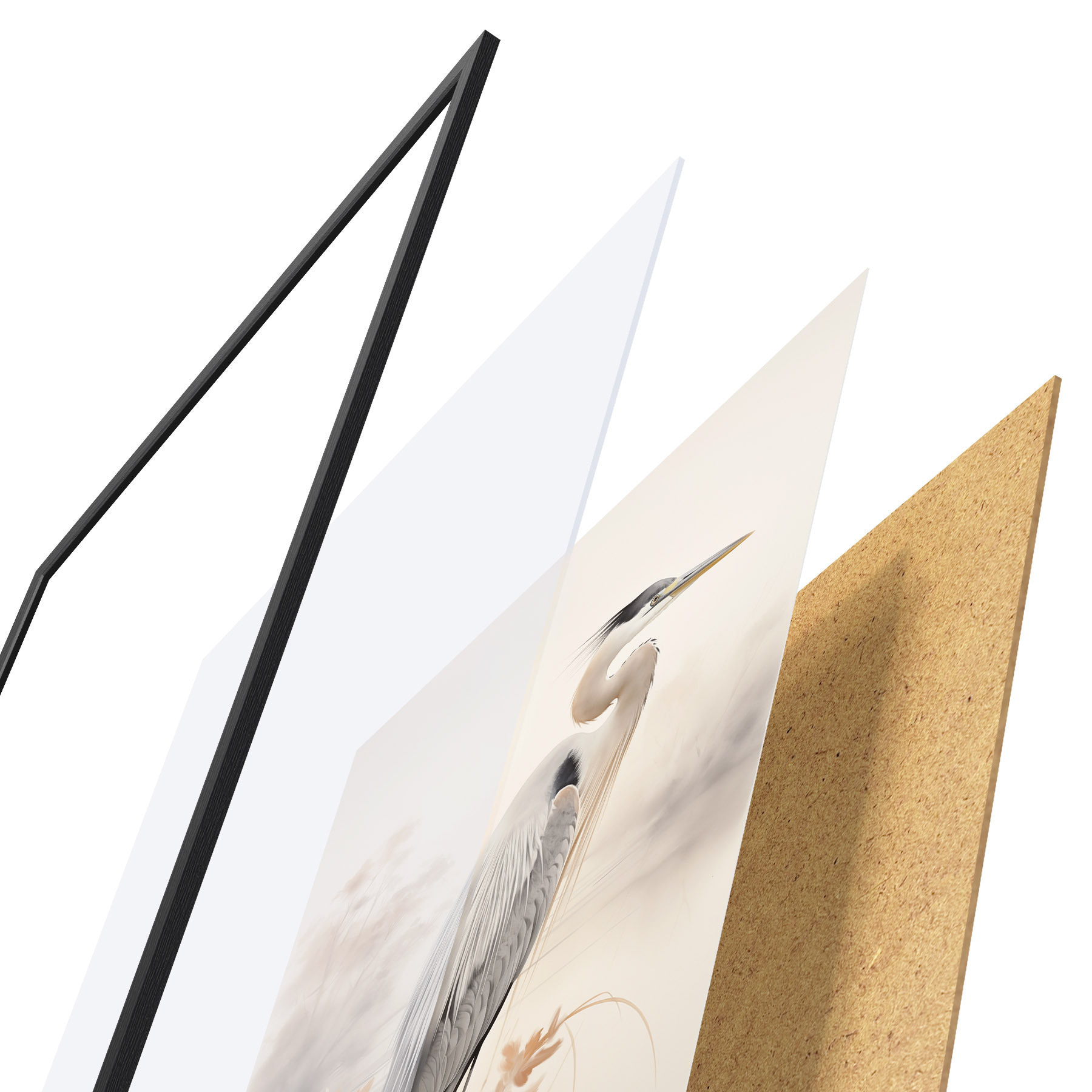 Plakāts sastāv no rāmja, pleksstikla, iespiestā attēla un skaidu plātnes pamatnes. Plakātu var uzreiz piekarināt pie sienas, pateicoties aizmugurē esošajiem stiprinājumiem.