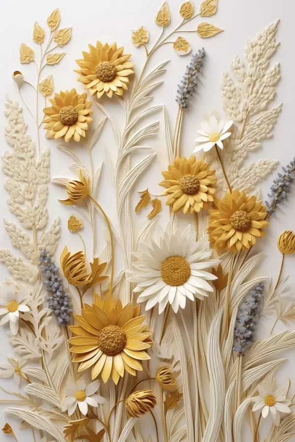 SākumlapaPlakātu katalogsPlakāti ziediPlakāts Teksturēta dzelteno un balto margarīšu kolekcija ar žāvētiem zāles stiebriem un lavandas zariņiem uz balta fona Nr f47430