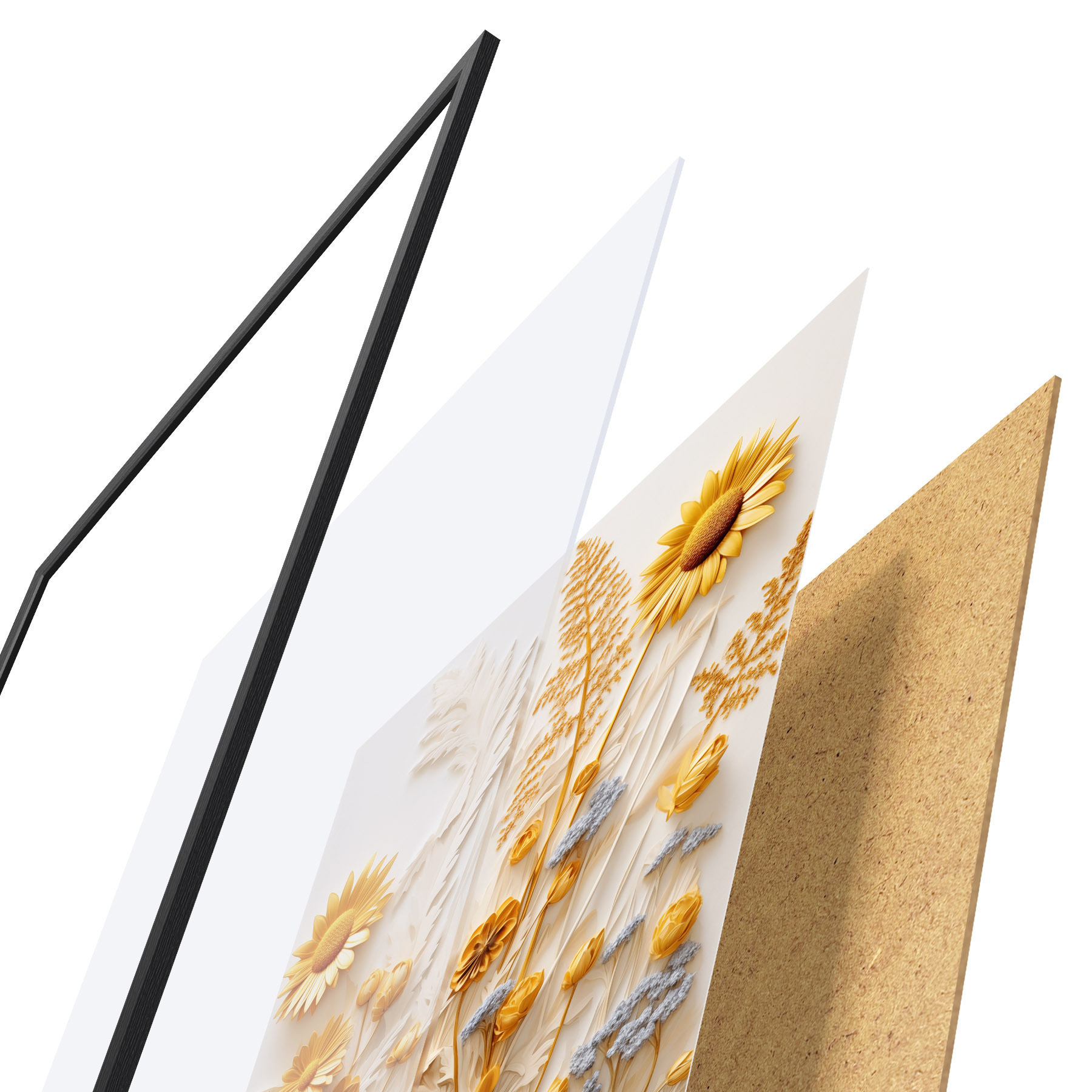 Plakāts sastāv no rāmja, pleksstikla, iespiestā attēla un skaidu plātnes pamatnes. Plakātu var uzreiz piekarināt pie sienas, pateicoties aizmugurē esošajiem stiprinājumiem.