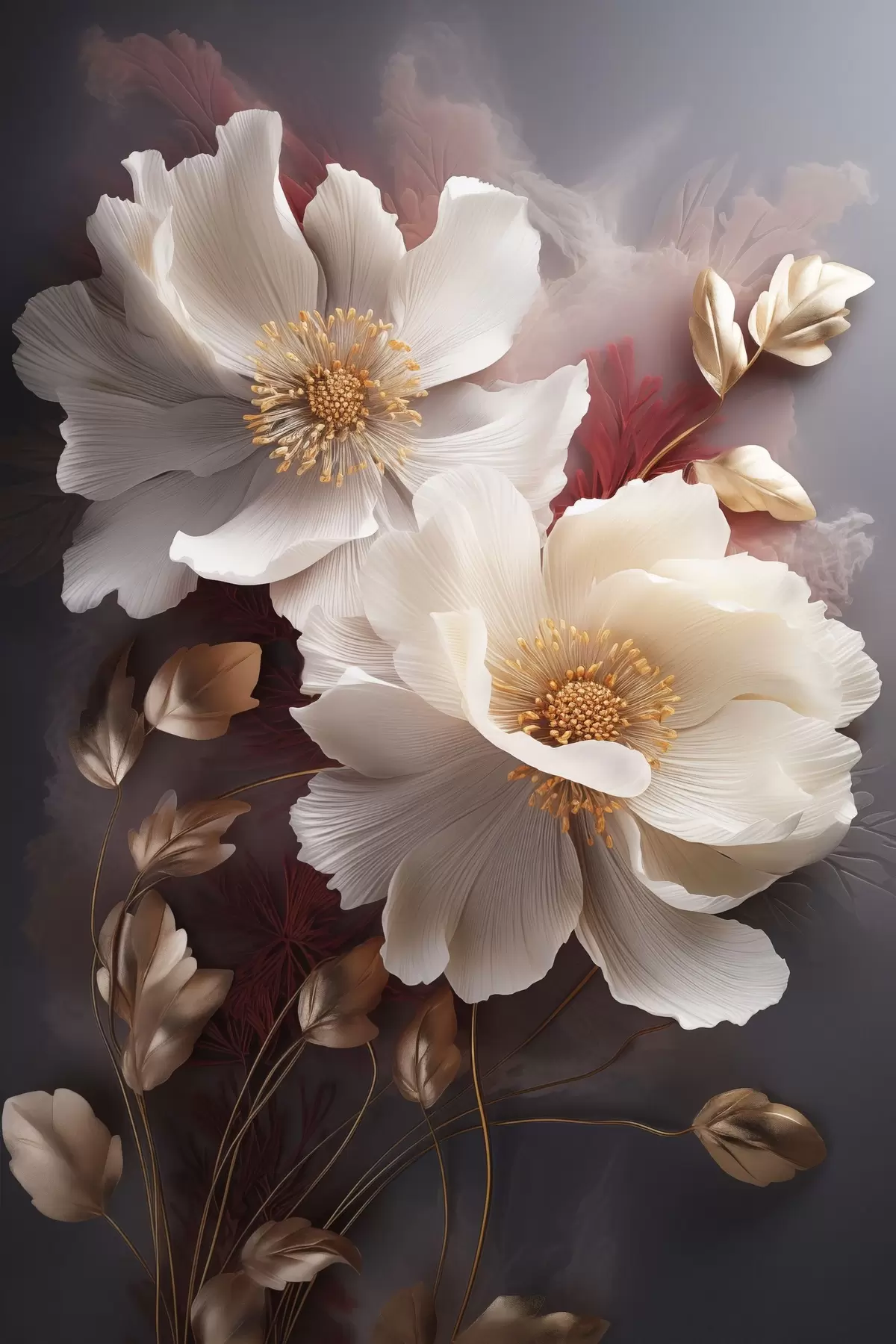 SākumlapaPlakātu katalogsPlakāti buferiPlakāts Delikātas peonijas ar plānām, plūstošām ziedlapām, apņemtas ar tumši sarkanām un dzeltenām lapām uz abstraktā fona Nr f47435