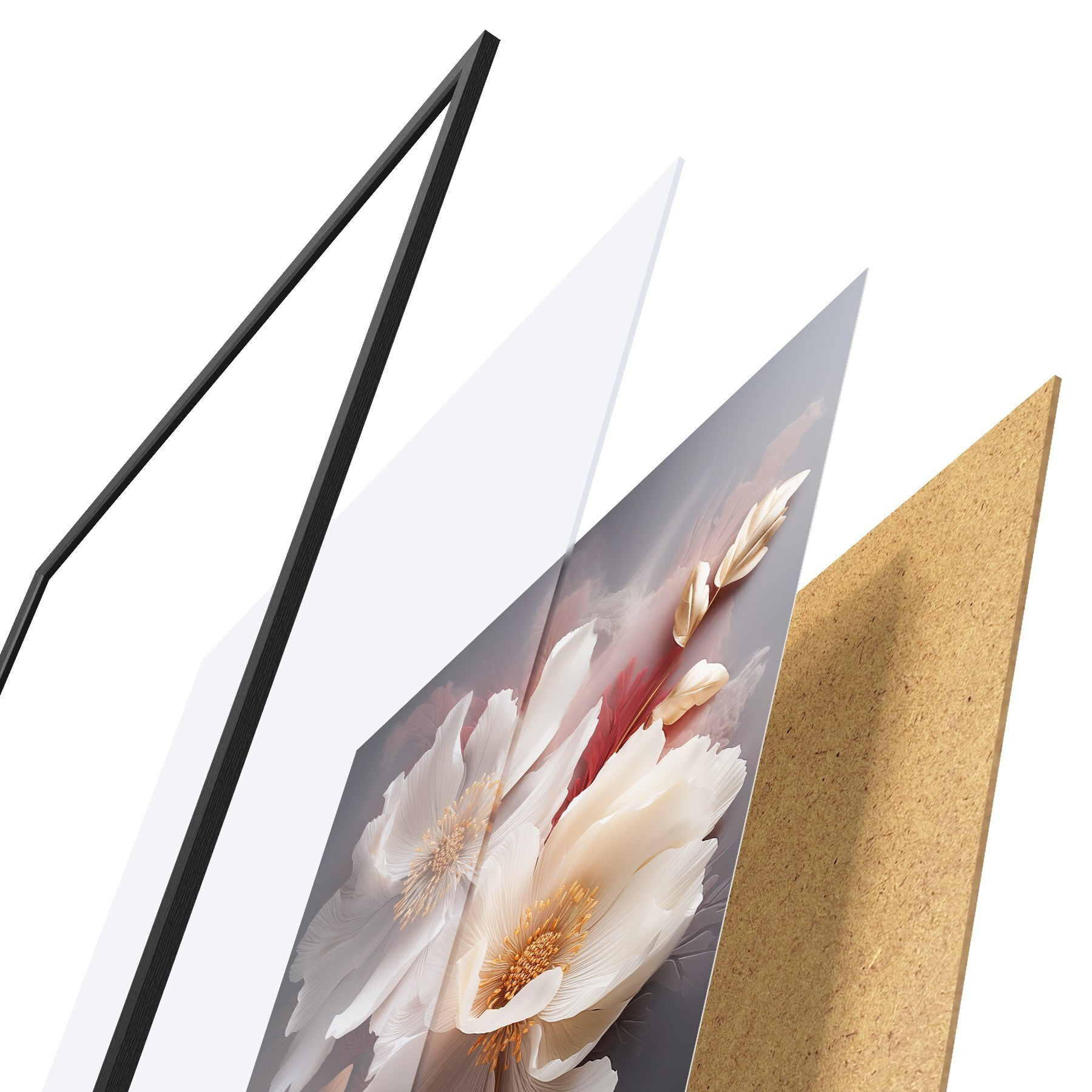 Plakāts sastāv no rāmja, pleksstikla, iespiestā attēla un skaidu plātnes pamatnes. Plakātu var uzreiz piekarināt pie sienas, pateicoties aizmugurē esošajiem stiprinājumiem.