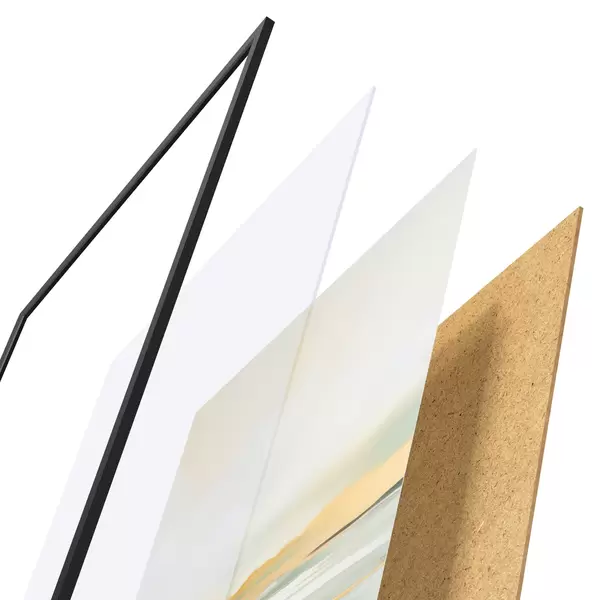 Plakāts sastāv no rāmja, pleksstikla, iespiestā attēla un skaidu plātnes pamatnes. Plakātu var uzreiz piekarināt pie sienas, pateicoties aizmugurē esošajiem stiprinājumiem.