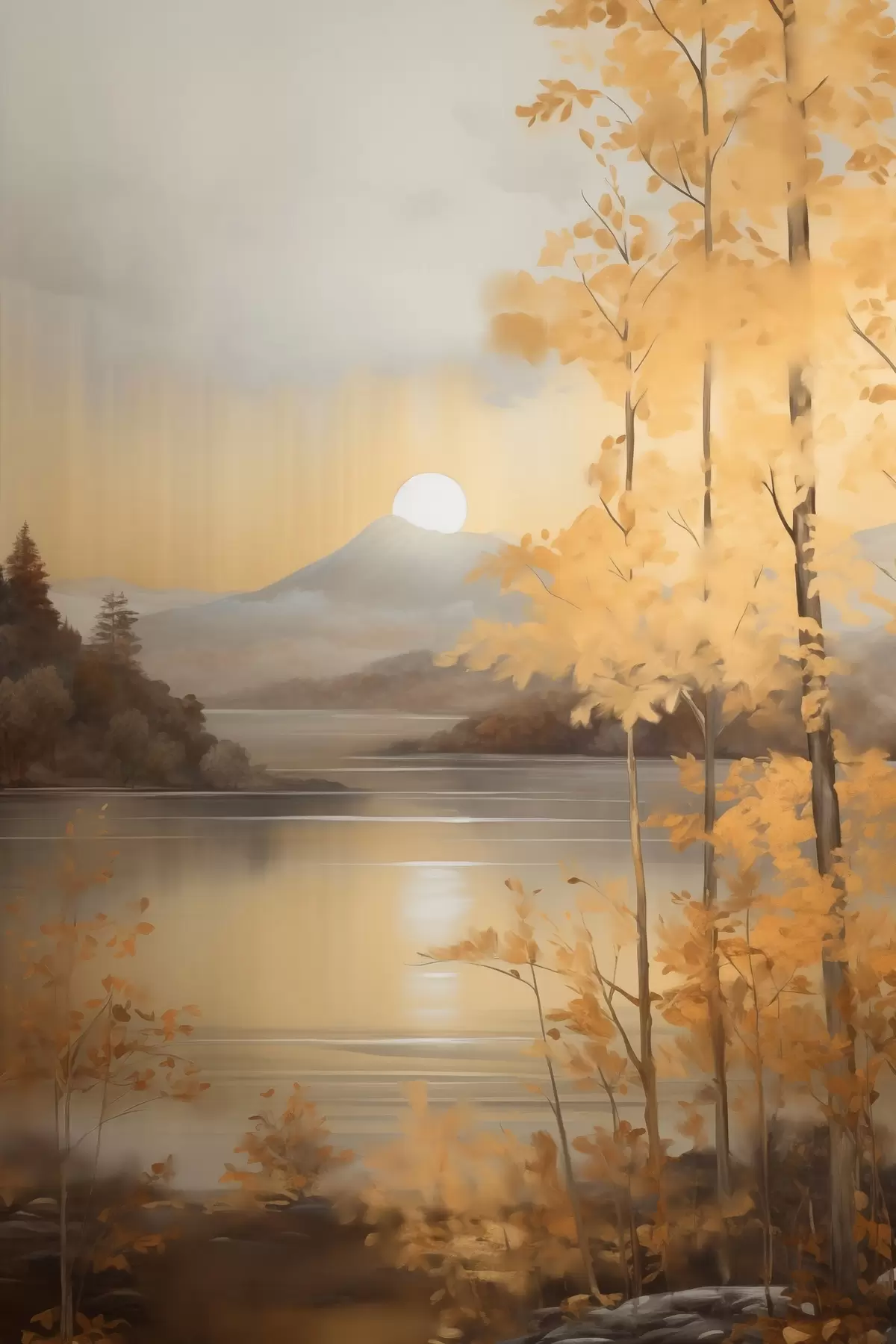 SākumlapaPlakātu katalogsPlakāti buferiPlakāts Rudens teksturēti koki ar oranžām lapām ierāmē mierīgu ezeru ar tālumā redzamām kalnām zem apmākušām debesīm. Nr f47440