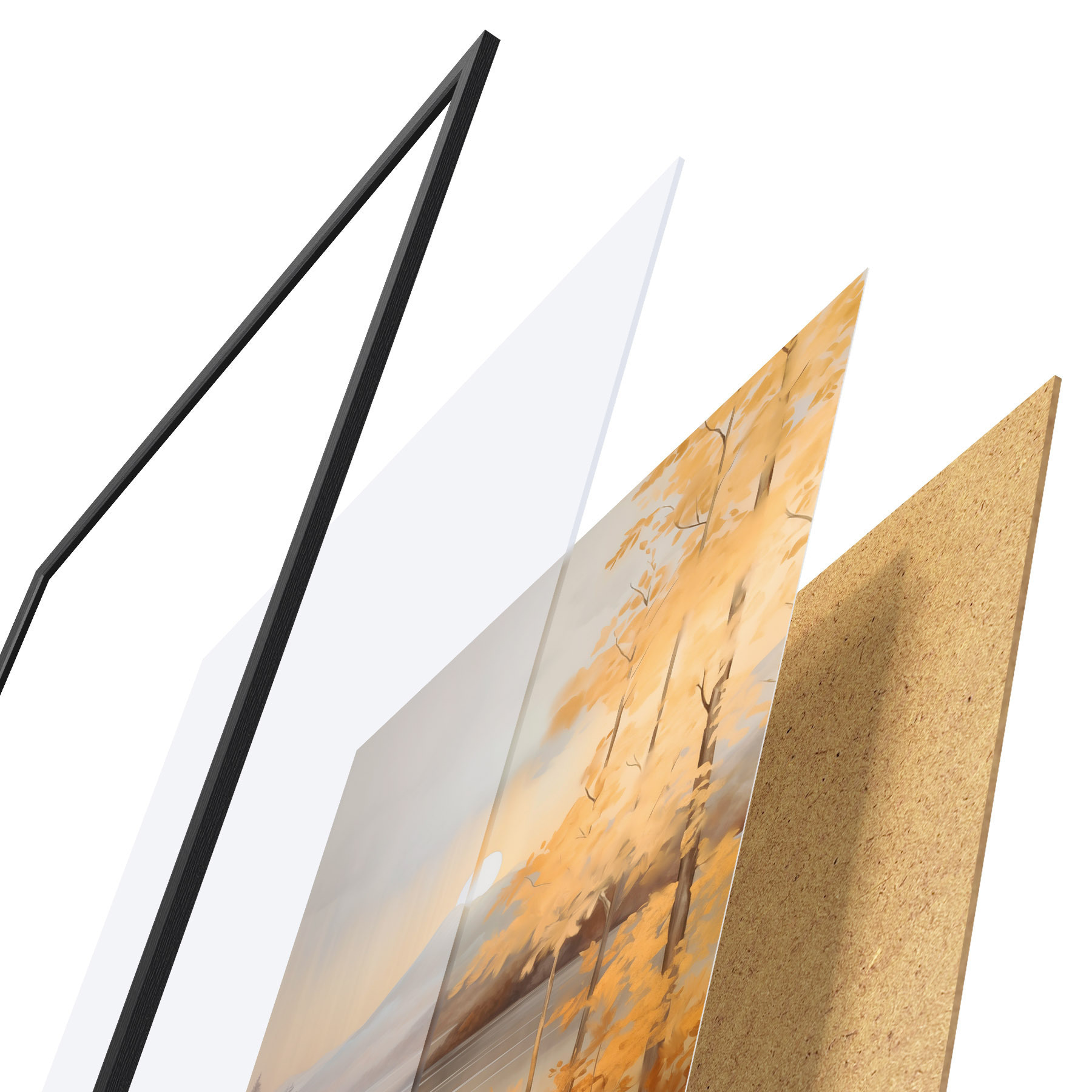 Plakāts sastāv no rāmja, pleksstikla, iespiestā attēla un skaidu plātnes pamatnes. Plakātu var uzreiz piekarināt pie sienas, pateicoties aizmugurē esošajiem stiprinājumiem.
