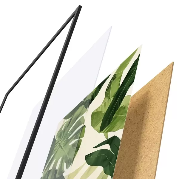 Plakāts sastāv no rāmja, pleksstikla, iespiestā attēla un skaidu plātnes pamatnes. Plakātu var uzreiz piekarināt pie sienas, pateicoties aizmugurē esošajiem stiprinājumiem.