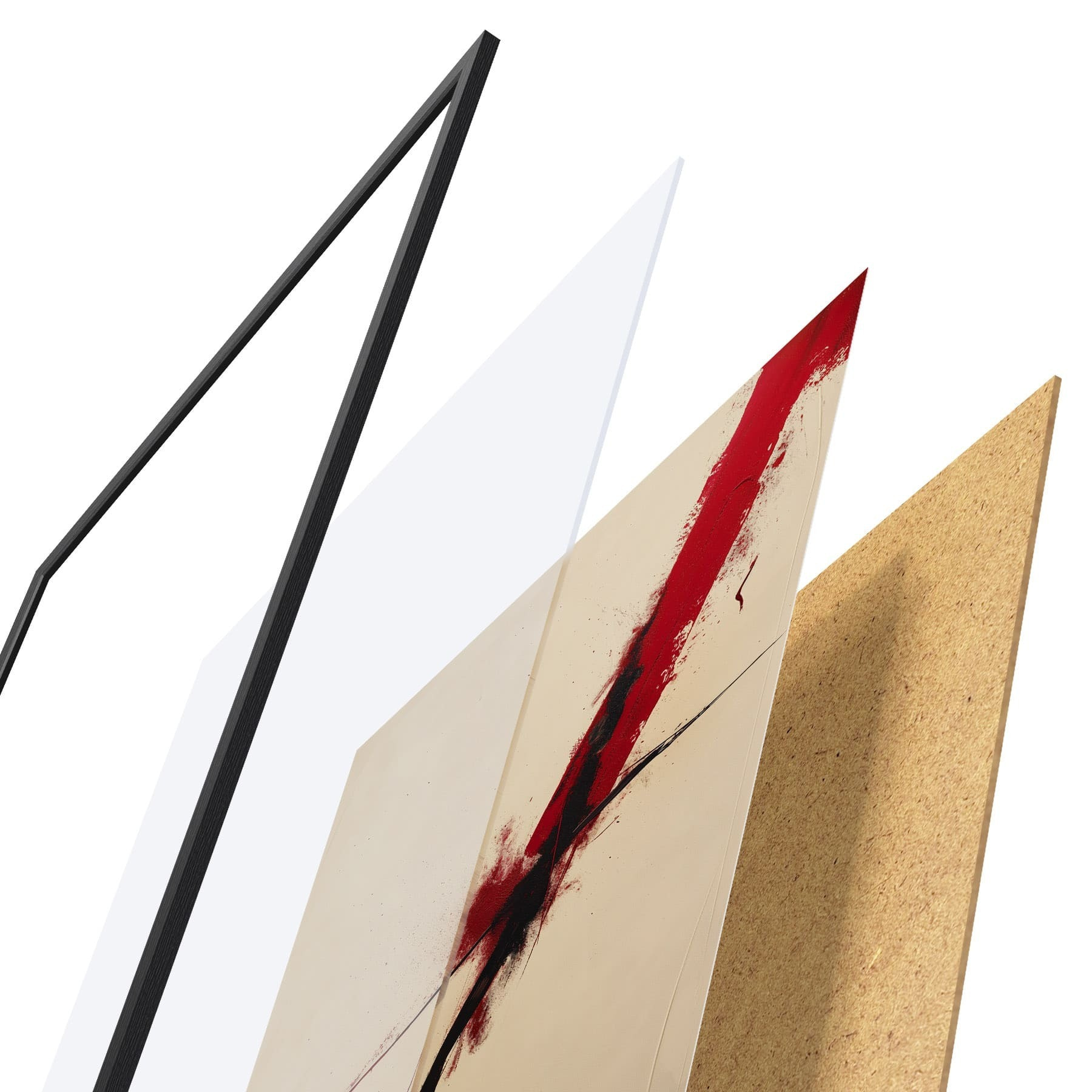 Plakāts sastāv no rāmja, pleksstikla, iespiestā attēla un skaidu plātnes pamatnes. Plakātu var uzreiz piekarināt pie sienas, pateicoties aizmugurē esošajiem stiprinājumiem.