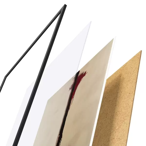 Plakāts sastāv no rāmja, pleksstikla, iespiestā attēla un skaidu plātnes pamatnes. Plakātu var uzreiz piekarināt pie sienas, pateicoties aizmugurē esošajiem stiprinājumiem.