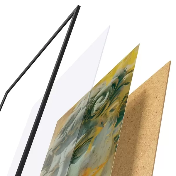 Plakāts sastāv no rāmja, pleksstikla, iespiestā attēla un skaidu plātnes pamatnes. Plakātu var uzreiz piekarināt pie sienas, pateicoties aizmugurē esošajiem stiprinājumiem.