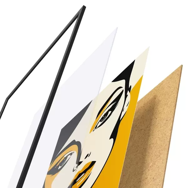Plakāts sastāv no rāmja, pleksstikla, iespiestā attēla un skaidu plātnes pamatnes. Plakātu var uzreiz piekarināt pie sienas, pateicoties aizmugurē esošajiem stiprinājumiem.