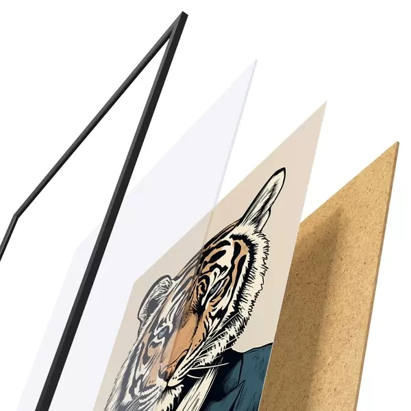 Plakāts sastāv no rāmja, pleksstikla, iespiestā attēla un skaidu plātnes pamatnes. Plakātu var uzreiz piekarināt pie sienas, pateicoties aizmugurē esošajiem stiprinājumiem.