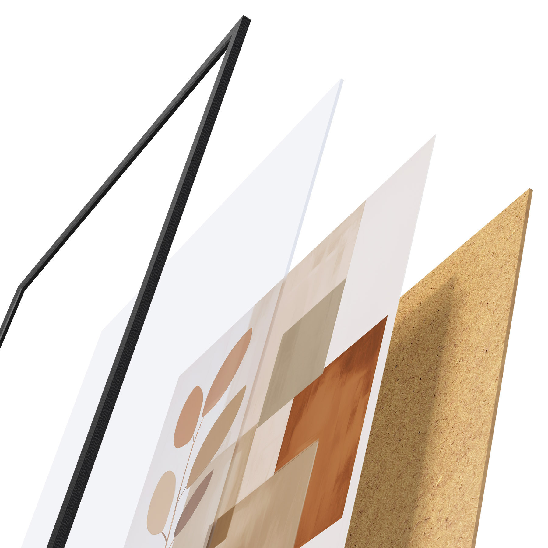 Plakāts sastāv no rāmja, pleksstikla, iespiestā attēla un skaidu plātnes pamatnes. Plakātu var uzreiz piekarināt pie sienas, pateicoties aizmugurē esošajiem stiprinājumiem.