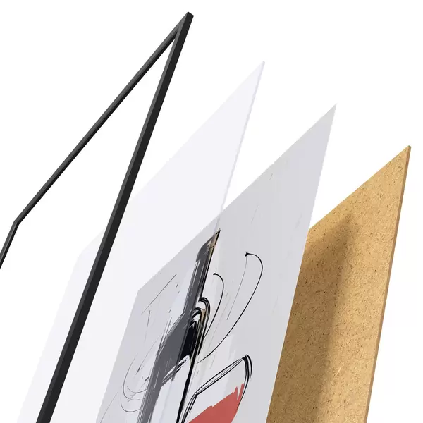 Plakāts sastāv no rāmja, pleksstikla, iespiestā attēla un skaidu plātnes pamatnes. Plakātu var uzreiz piekarināt pie sienas, pateicoties aizmugurē esošajiem stiprinājumiem.