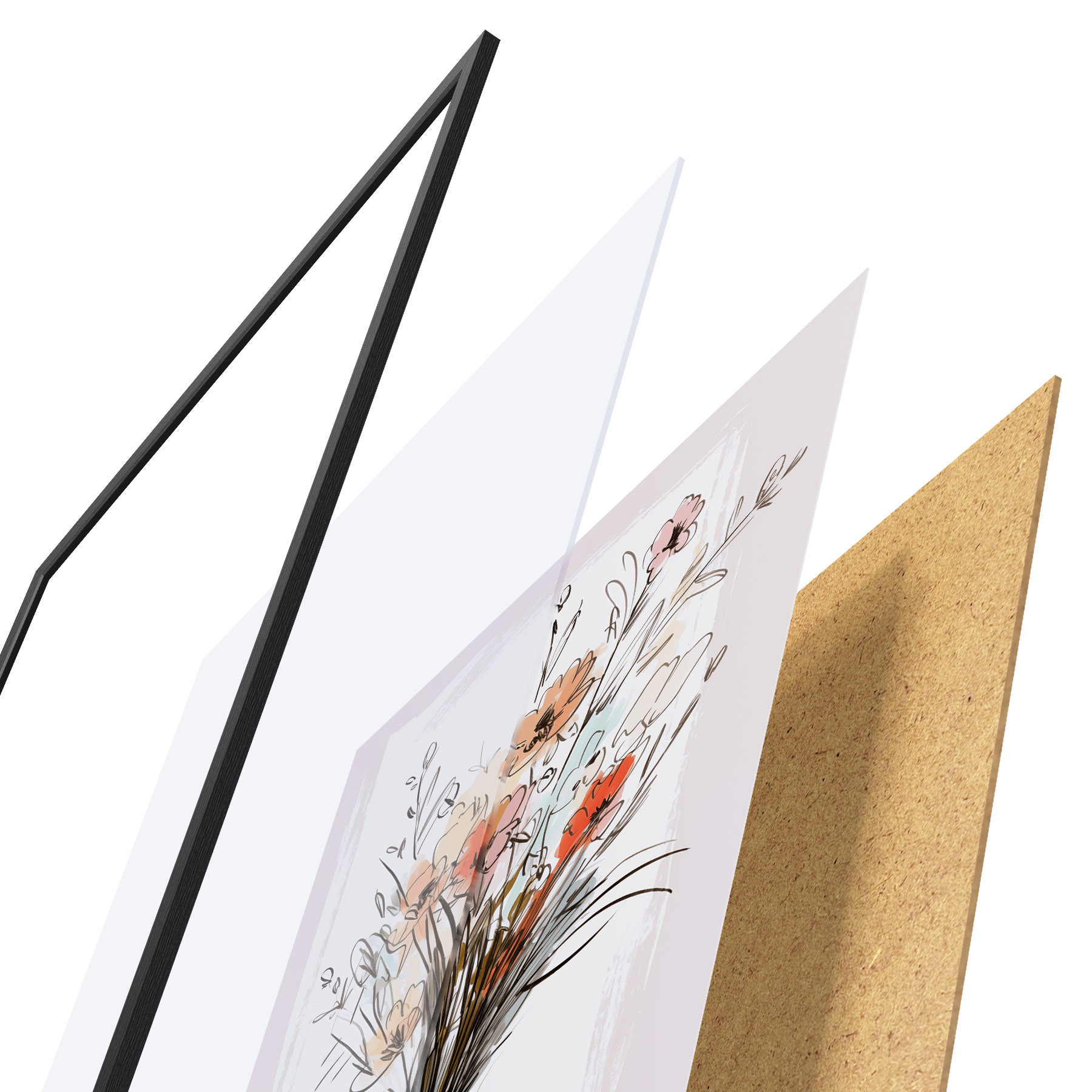 Plakāts sastāv no rāmja, pleksstikla, iespiestā attēla un skaidu plātnes pamatnes. Plakātu var uzreiz piekarināt pie sienas, pateicoties aizmugurē esošajiem stiprinājumiem.