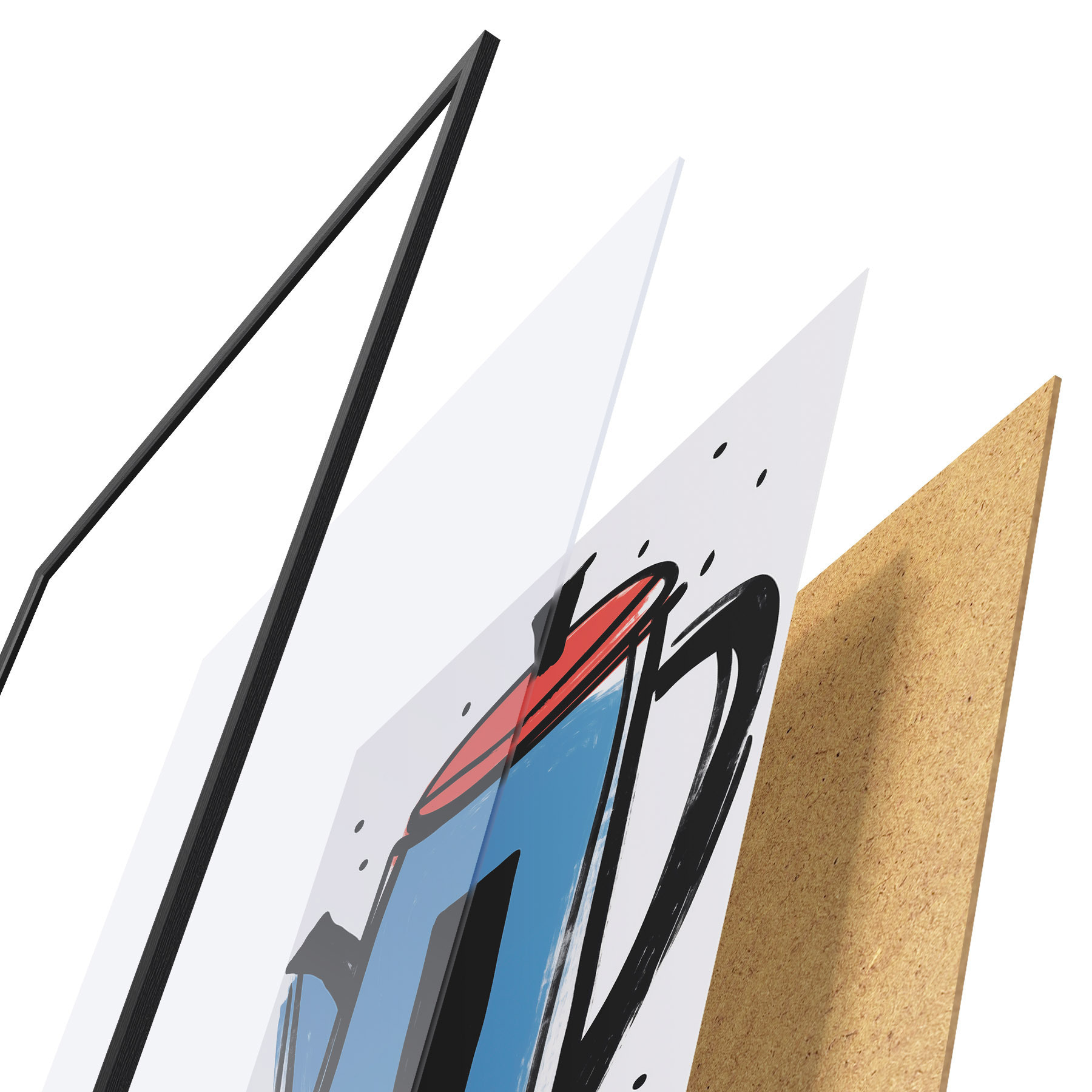 Plakāts sastāv no rāmja, pleksstikla, iespiestā attēla un skaidu plātnes pamatnes. Plakātu var uzreiz piekarināt pie sienas, pateicoties aizmugurē esošajiem stiprinājumiem.