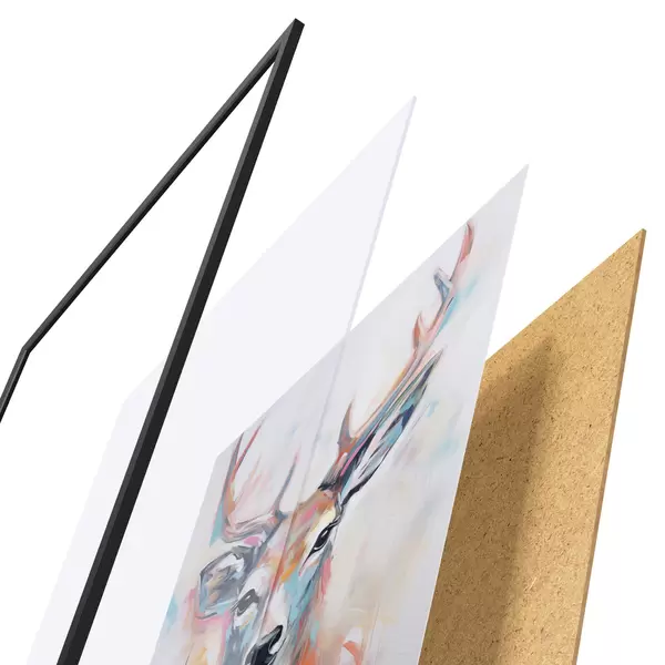 Plakāts sastāv no rāmja, pleksstikla, iespiestā attēla un skaidu plātnes pamatnes. Plakātu var uzreiz piekarināt pie sienas, pateicoties aizmugurē esošajiem stiprinājumiem.