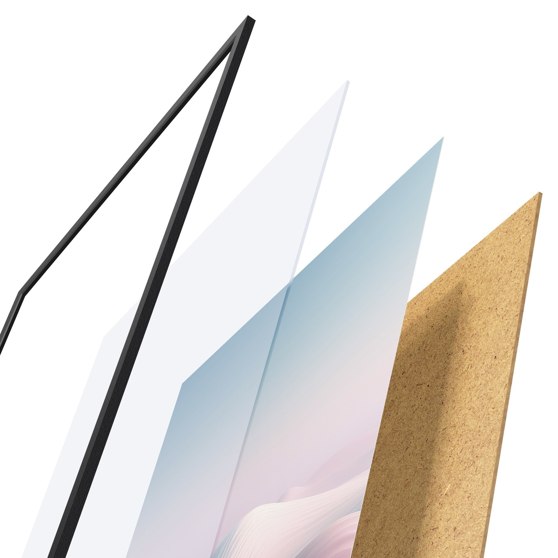 Plakāts sastāv no rāmja, pleksstikla, iespiestā attēla un skaidu plātnes pamatnes. Plakātu var uzreiz piekarināt pie sienas, pateicoties aizmugurē esošajiem stiprinājumiem.