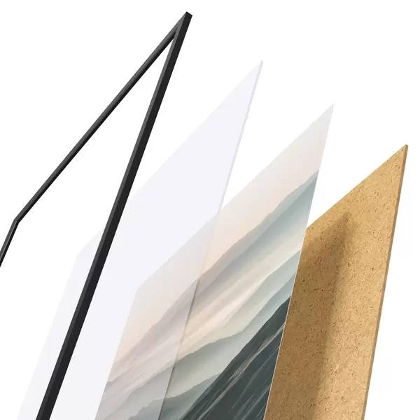 Plakāts sastāv no rāmja, pleksstikla, iespiestā attēla un skaidu plātnes pamatnes. Plakātu var uzreiz piekarināt pie sienas, pateicoties aizmugurē esošajiem stiprinājumiem.