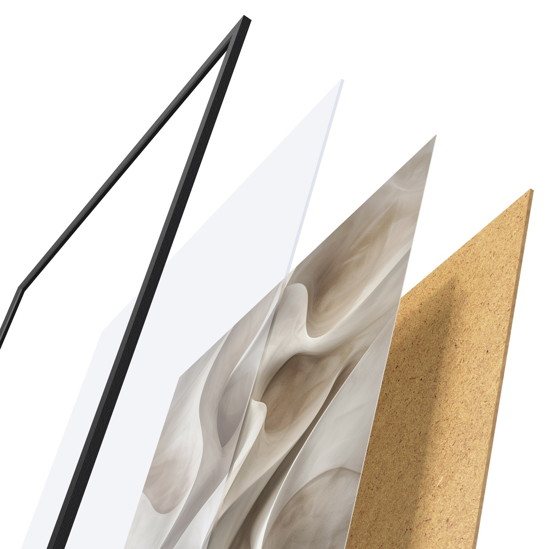 Plakāts sastāv no rāmja, pleksstikla, iespiestā attēla un skaidu plātnes pamatnes. Plakātu var uzreiz piekarināt pie sienas, pateicoties aizmugurē esošajiem stiprinājumiem.