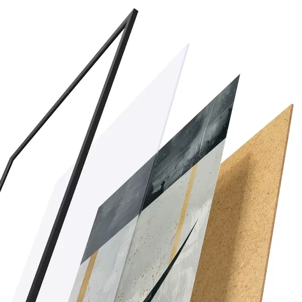 Plakāts sastāv no rāmja, pleksstikla, iespiestā attēla un skaidu plātnes pamatnes. Plakātu var uzreiz piekarināt pie sienas, pateicoties aizmugurē esošajiem stiprinājumiem.