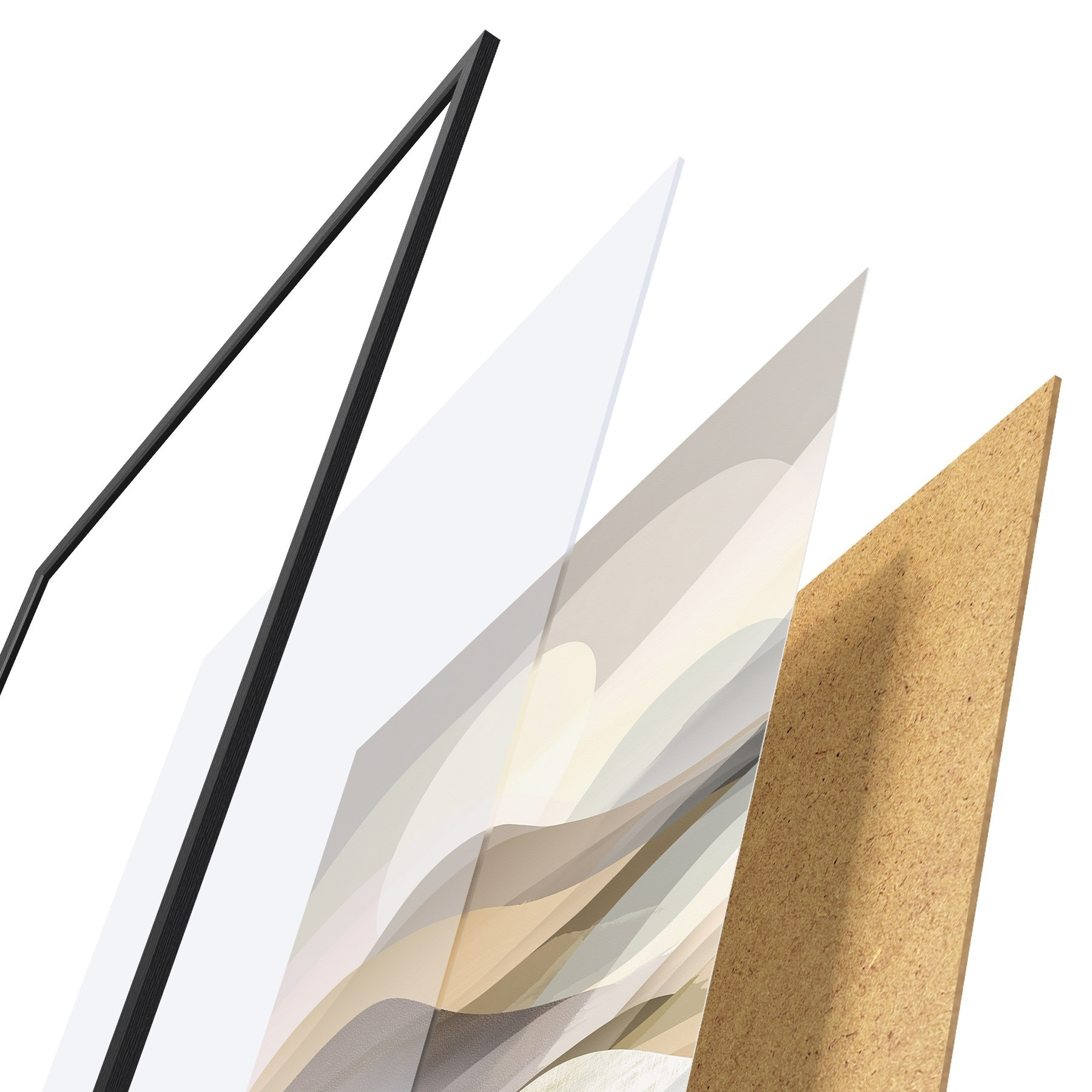 Plakāts sastāv no rāmja, pleksstikla, iespiestā attēla un skaidu plātnes pamatnes. Plakātu var uzreiz piekarināt pie sienas, pateicoties aizmugurē esošajiem stiprinājumiem.