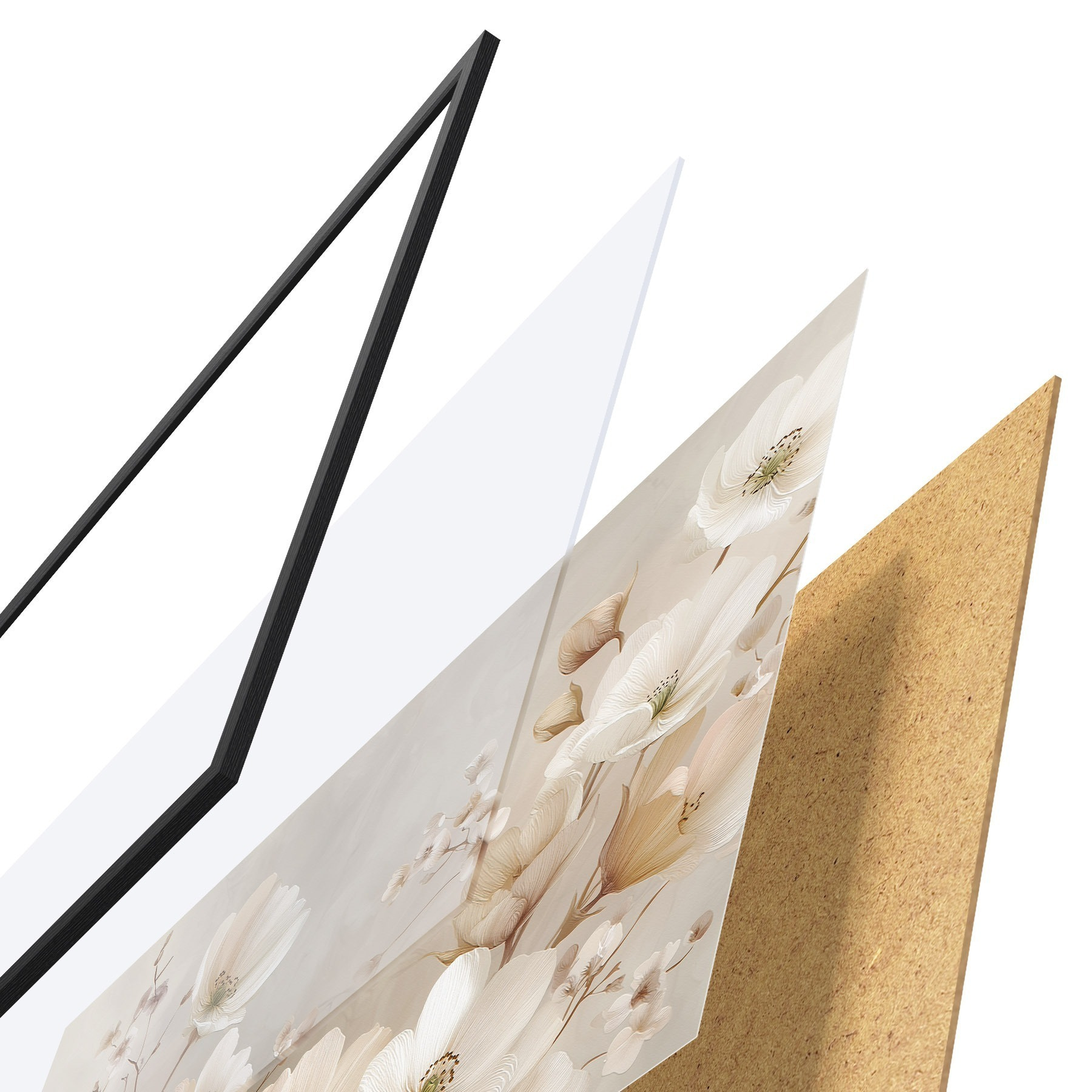 Plakāts sastāv no rāmja, pleksstikla, iespiestā attēla un skaidu plātnes pamatnes. Plakātu var uzreiz piekarināt pie sienas, pateicoties aizmugurē esošajiem stiprinājumiem.