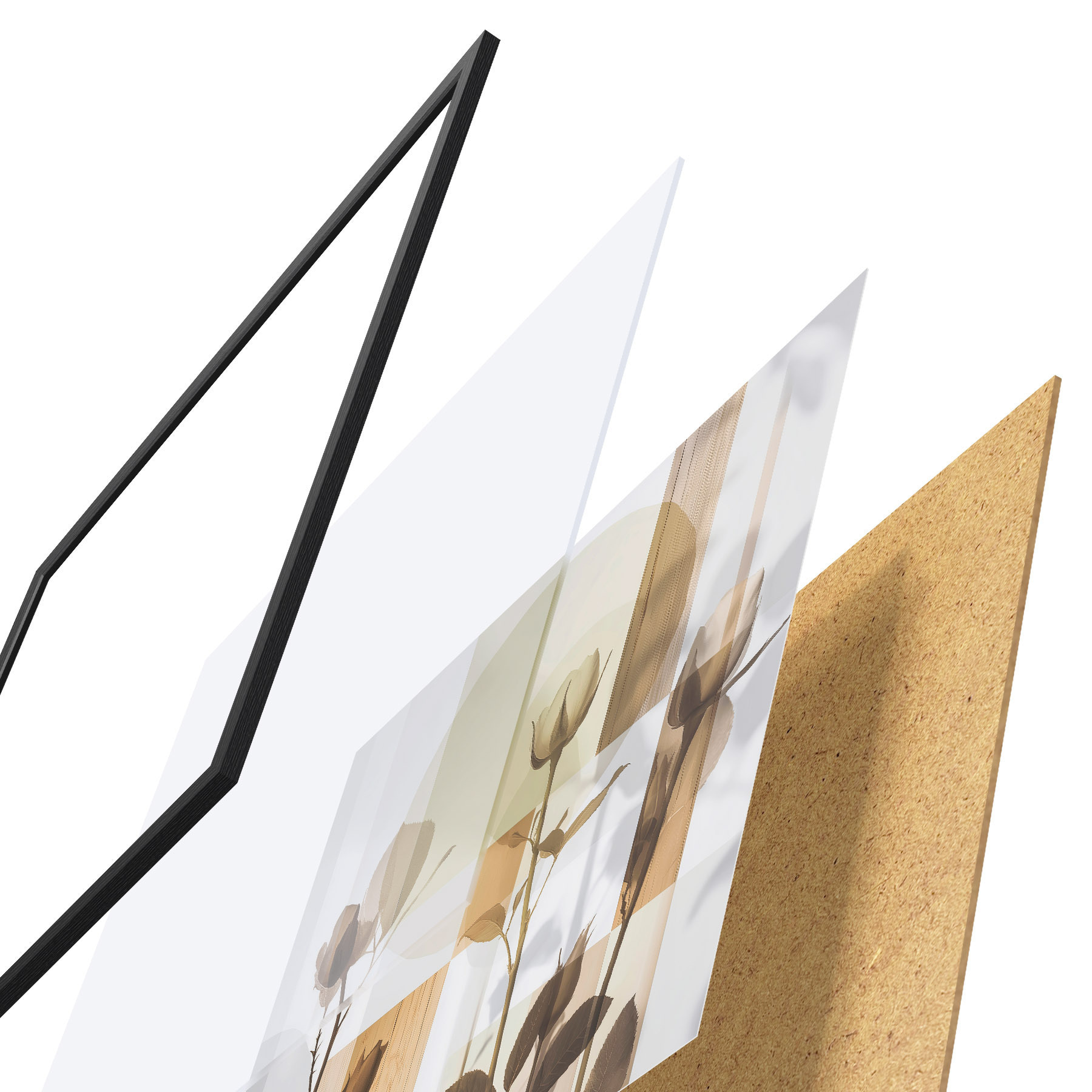Plakāts sastāv no rāmja, pleksstikla, iespiestā attēla un skaidu plātnes pamatnes. Plakātu var uzreiz piekarināt pie sienas, pateicoties aizmugurē esošajiem stiprinājumiem.