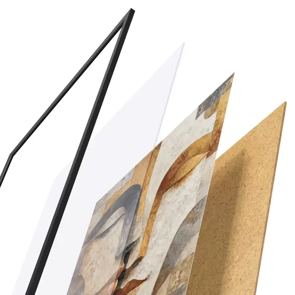 Plakāts sastāv no rāmja, pleksstikla, iespiestā attēla un skaidu plātnes pamatnes. Plakātu var uzreiz piekarināt pie sienas, pateicoties aizmugurē esošajiem stiprinājumiem.