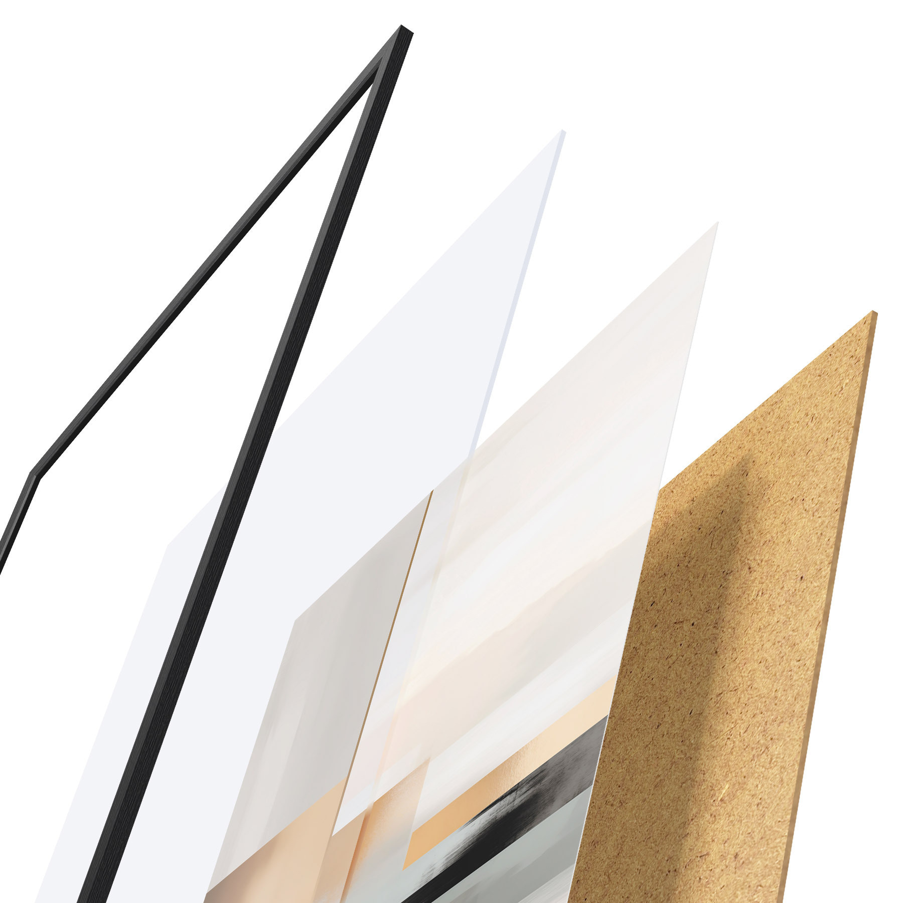 Plakāts sastāv no rāmja, pleksstikla, iespiestā attēla un skaidu plātnes pamatnes. Plakātu var uzreiz piekarināt pie sienas, pateicoties aizmugurē esošajiem stiprinājumiem.