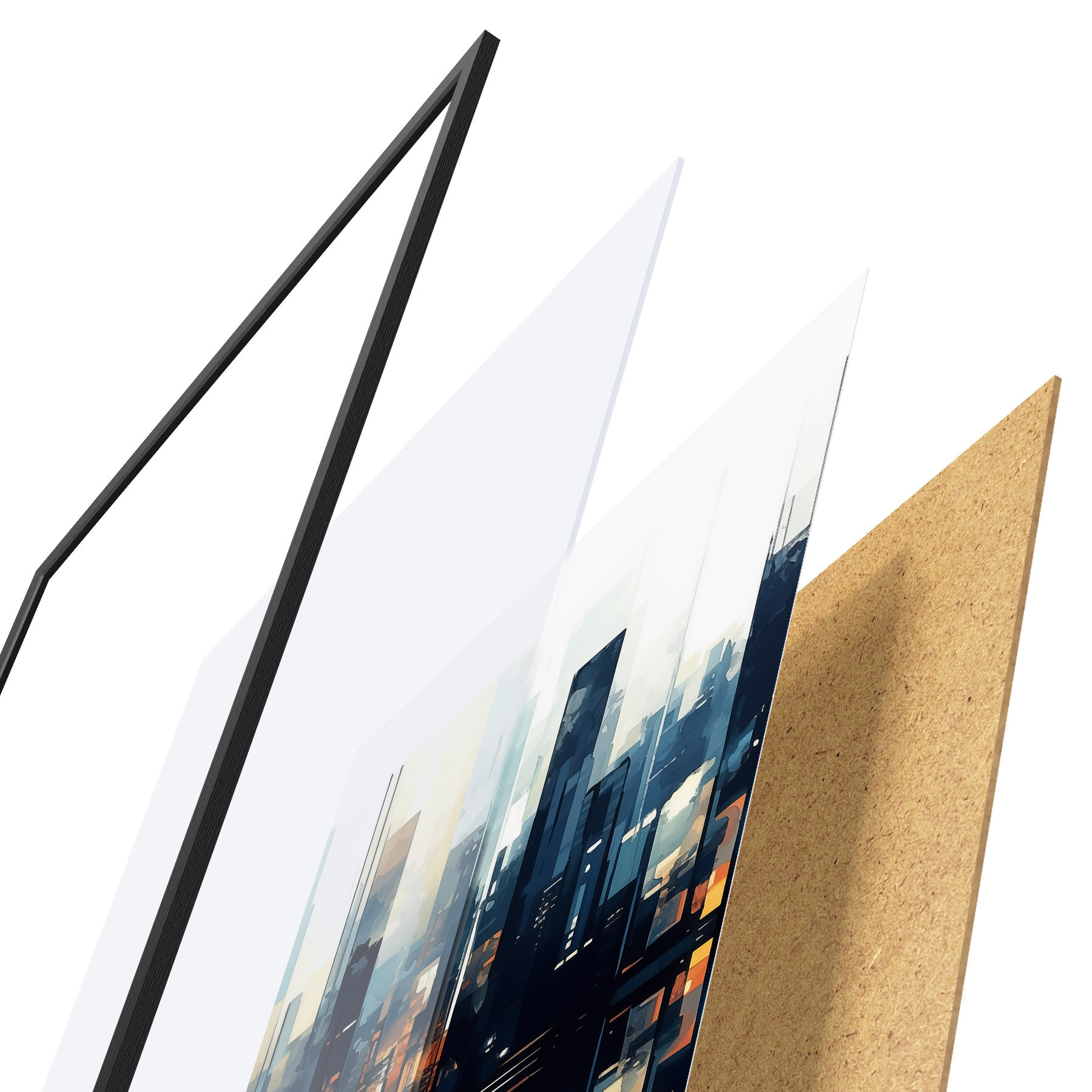 Plakāts sastāv no rāmja, pleksstikla, iespiestā attēla un skaidu plātnes pamatnes. Plakātu var uzreiz piekarināt pie sienas, pateicoties aizmugurē esošajiem stiprinājumiem.