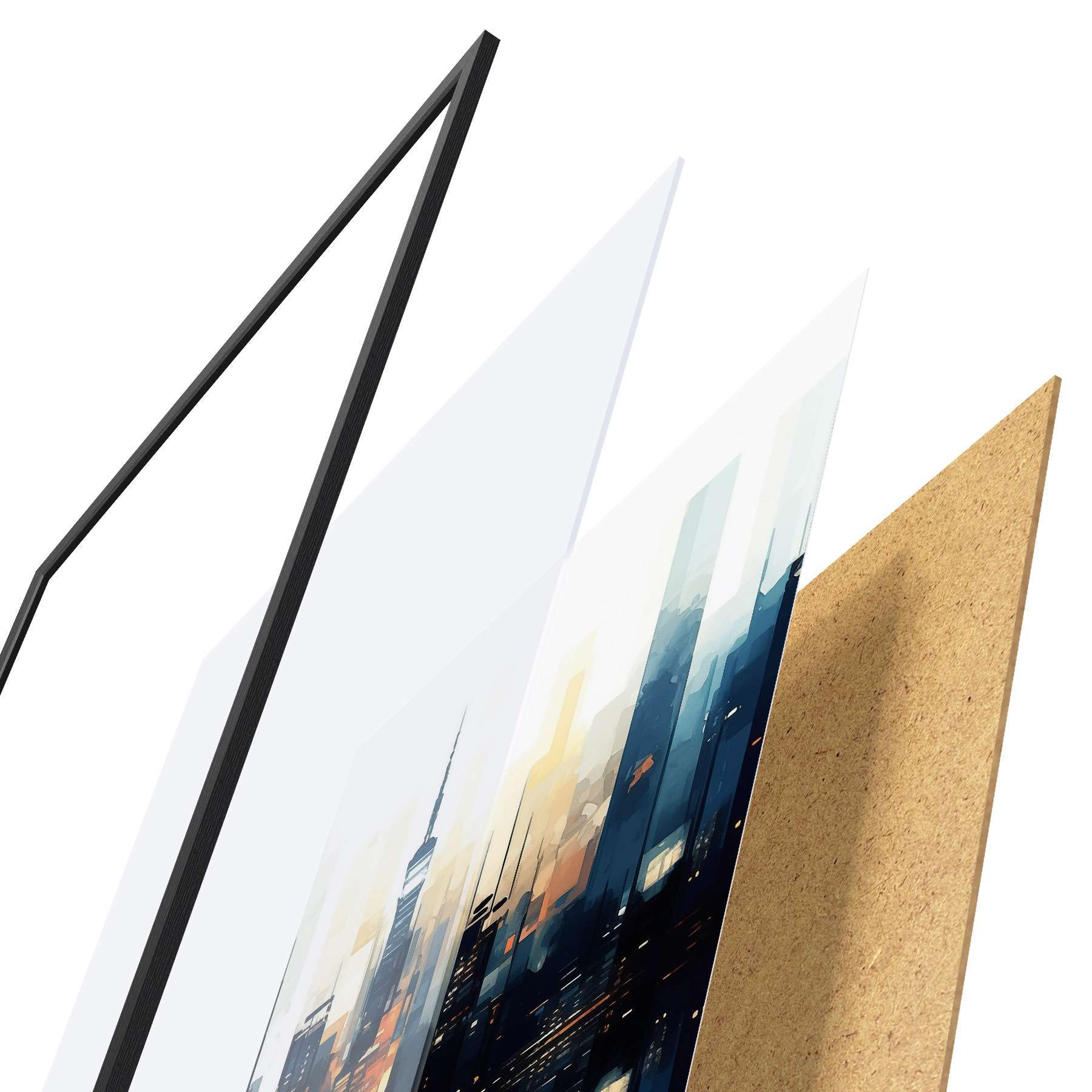 Plakāts sastāv no rāmja, pleksstikla, iespiestā attēla un skaidu plātnes pamatnes. Plakātu var uzreiz piekarināt pie sienas, pateicoties aizmugurē esošajiem stiprinājumiem.